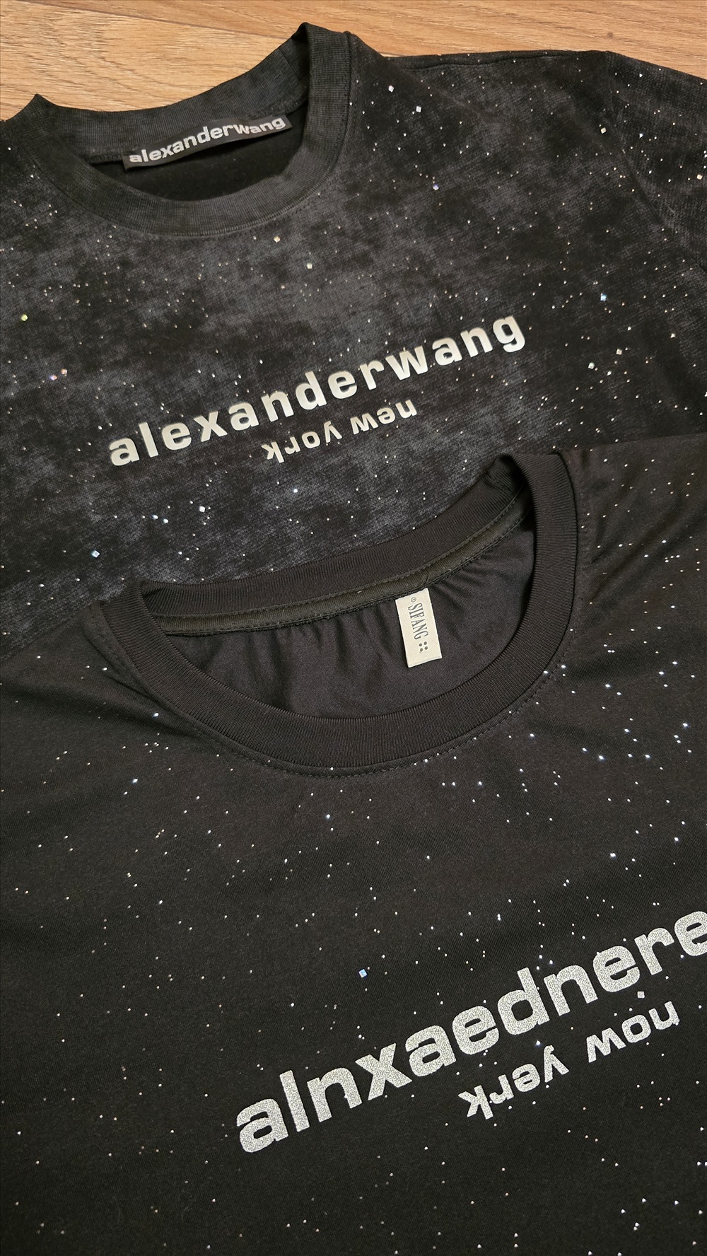 Футболка классная, плотный хлопок, швы ровные. Надпись прорещиненна и стразы очень зорошо приклеены, после стирки ничего не отлетело. Соответствует размерной сетке, батал. Очень похож на оригинал, в крайнем случае не отличишь. Понравилась, спасибо организатору.