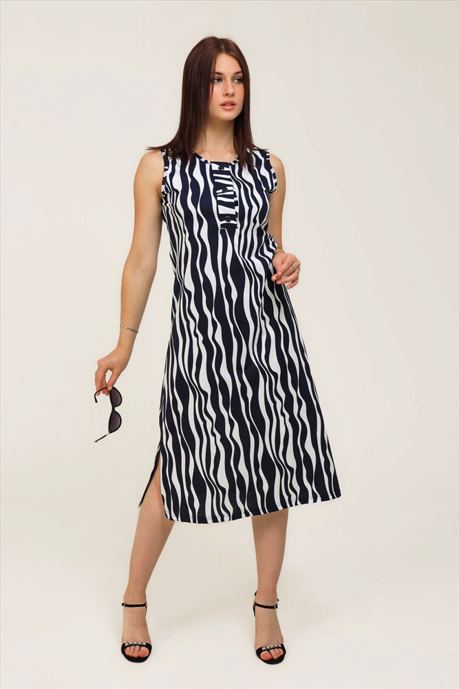 Состав: Хлопок 100%. Модель: № 21587 Сарафан Тип товара: сарафан Материал: кулирка | кулирка Бренд: Натали Суслова Длина: длинный | средняя длина Назначение: для пляжа НДС: 5% Рисунок: анималистичный | полоска Рукав: без рукава Сезонность: лето Силуэт: полуприлегающий Стиль: пляжный | повседневный Застежка: пуговицы Повседневное платье с рисунком Волна средней длинны. Базовая вещь женского гардероба из дышащей, приятной к телу ткани подойдёт на все случаи жизни. Удобный фасон слегка приталенного силуэта, застёжка планка с тремя пуговками, два боковых разреза. Качественно. Удобно. Для тебя. Таблица размеров и веса
