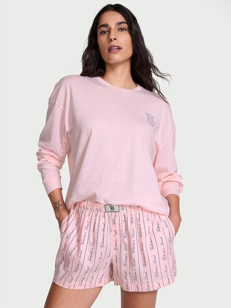 100% Cotton Shine Long-Sleeve Short Pajama Set