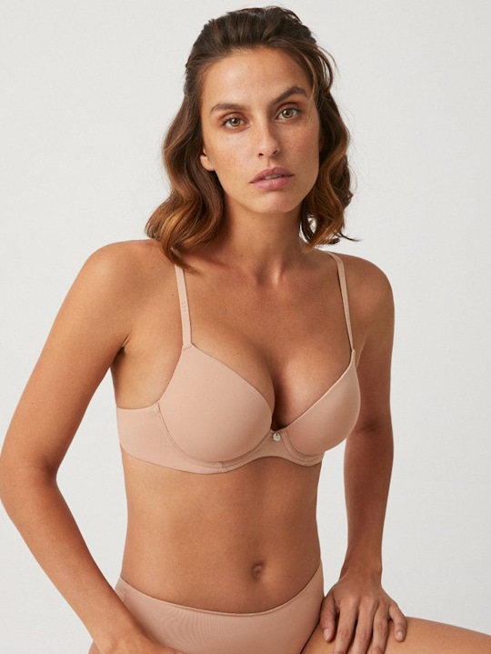 Состав: 90% полиамид, 10% эластан Корсетное белье из базовой коллекции 2022 от европейского производителя Ysabel Mora. Гладкая чашка выполена из плотного дышащего поролона на кости, со встроенным эффектом двойного push up. Сзади двухрядная застежка. Бретели несъемные, регулируются по длине.