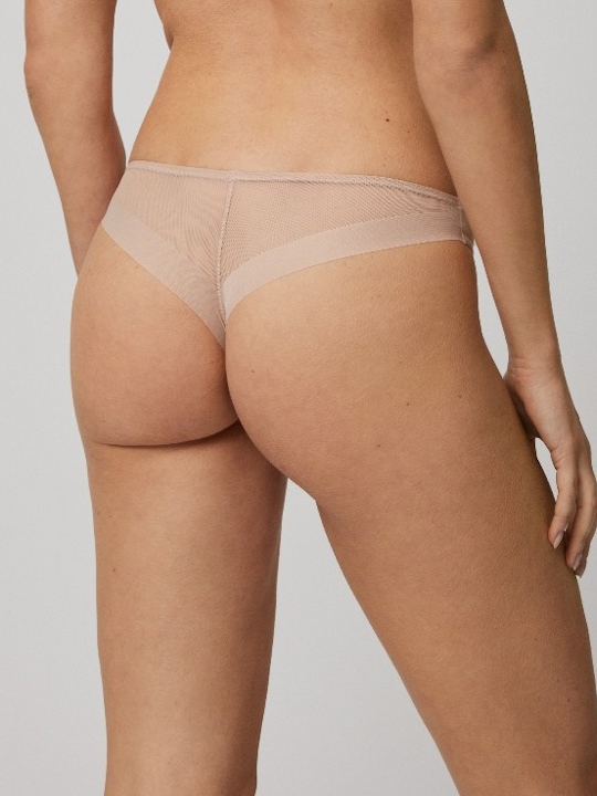 Состав: 79% полиамид, 21% эластан Трусы стринги. Задняя часть из сетки, передняя - гладкая эластичная ткань. Ластовица хлопковая.