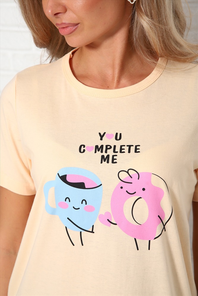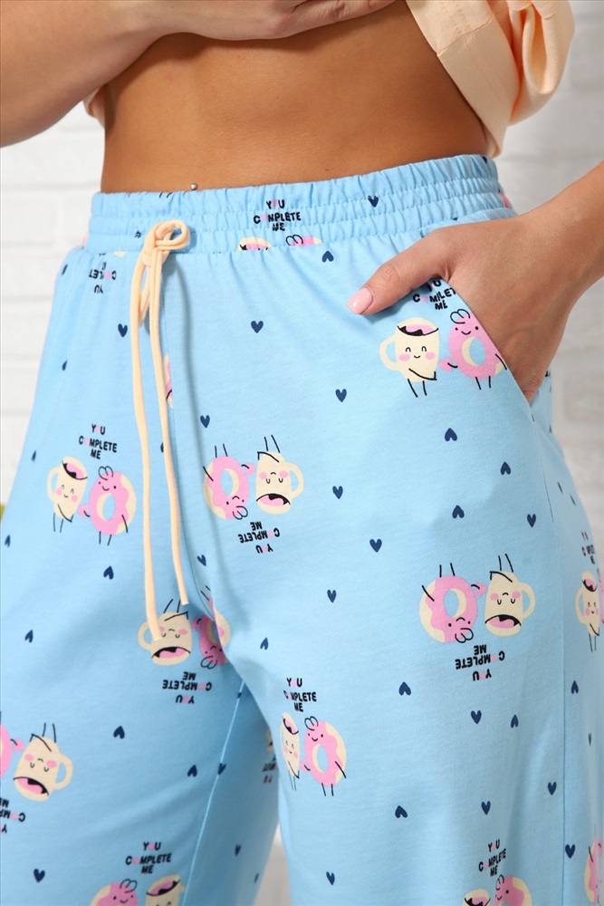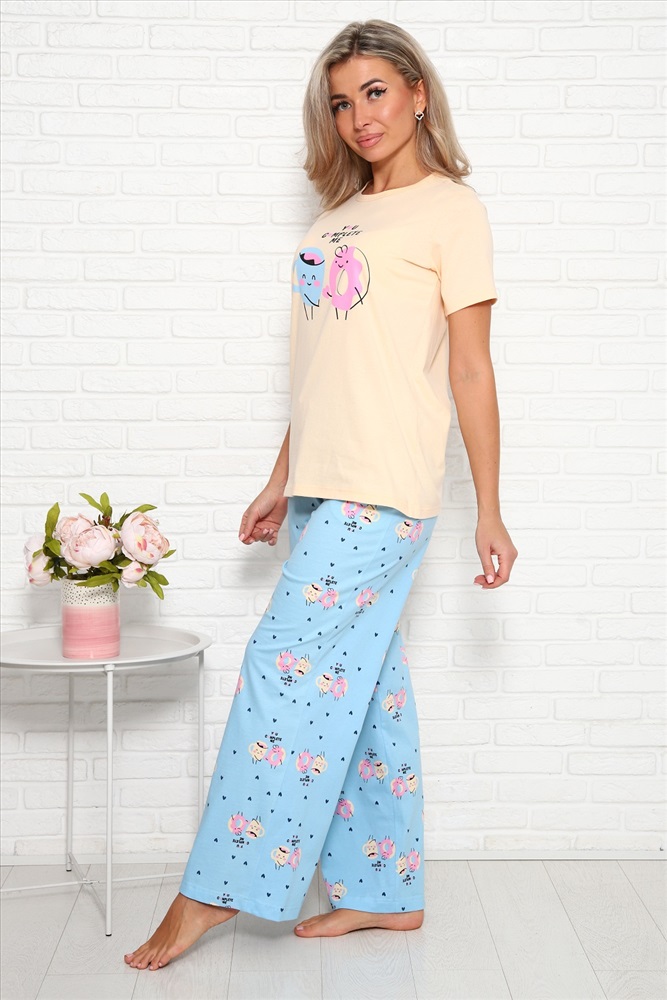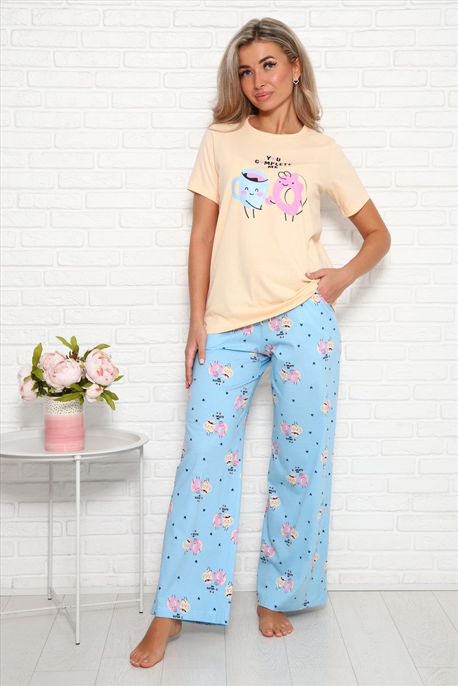 Состав: 100% Хлопок Модель: 1033 Пижама Тип товара: пижама с брюками Материал: кулирка | кулирка Бренд: ИП Кичемаев С.К. Карман: боковые Назначение: для дома НДС: 5% Особенности: на резинке Отделка: с карманами | с печатью Посадка: средняя посадка Рисунок: фуд-принт | надпись | разное Рукав: короткий рукав Сезонность: лето | осень | весна | зима Силуэт: прямой | свободный Стиль: домашний Воротник: без воротника Застежка: без застежки Пижама женская: футболка с короткими рукавами и очаровательной печатью на полочке, брюки-палацио на эластичном поясе, с боковыми карманами. Роскошный силуэт и комфорт хлопкового трикотажа. Таблица размеров и весафутболка
