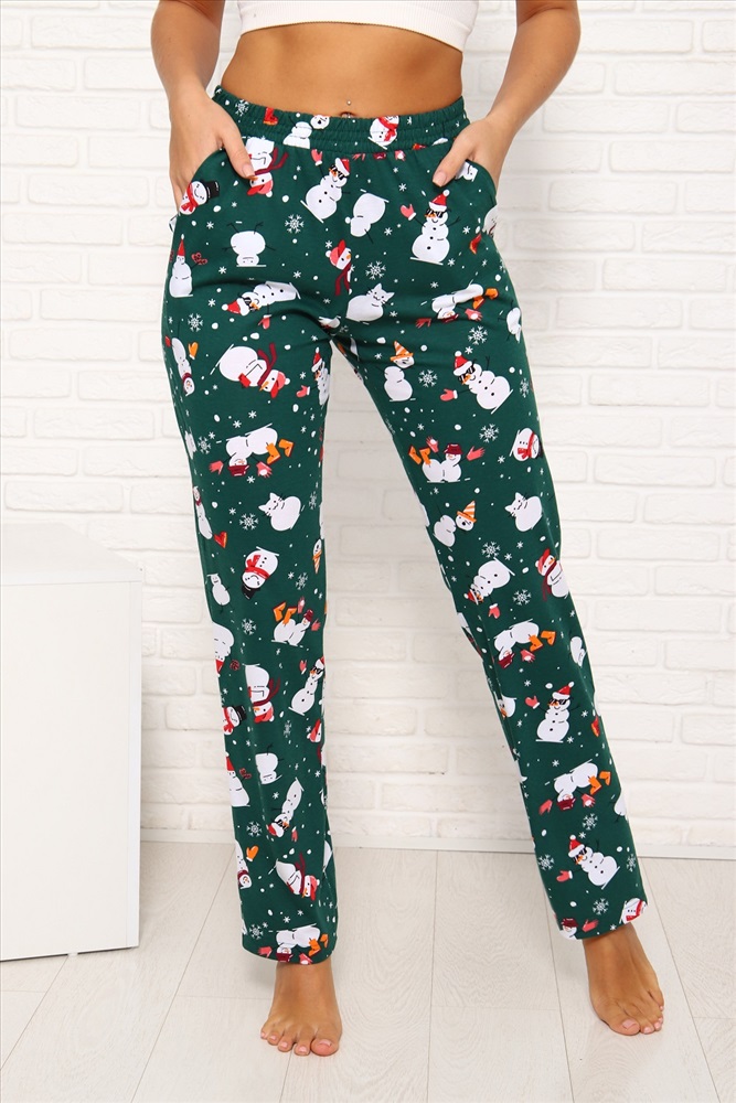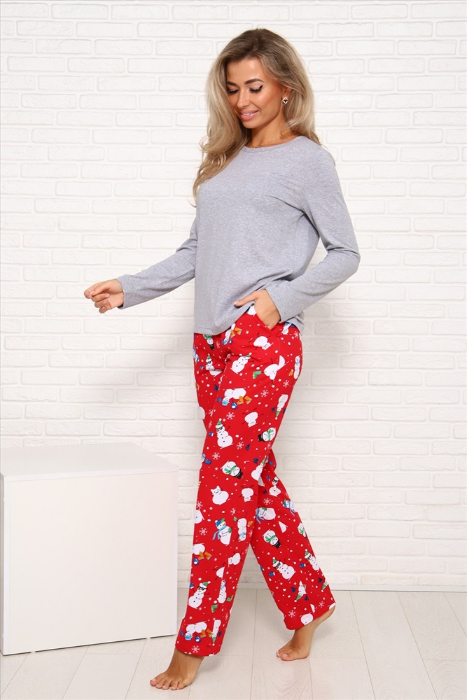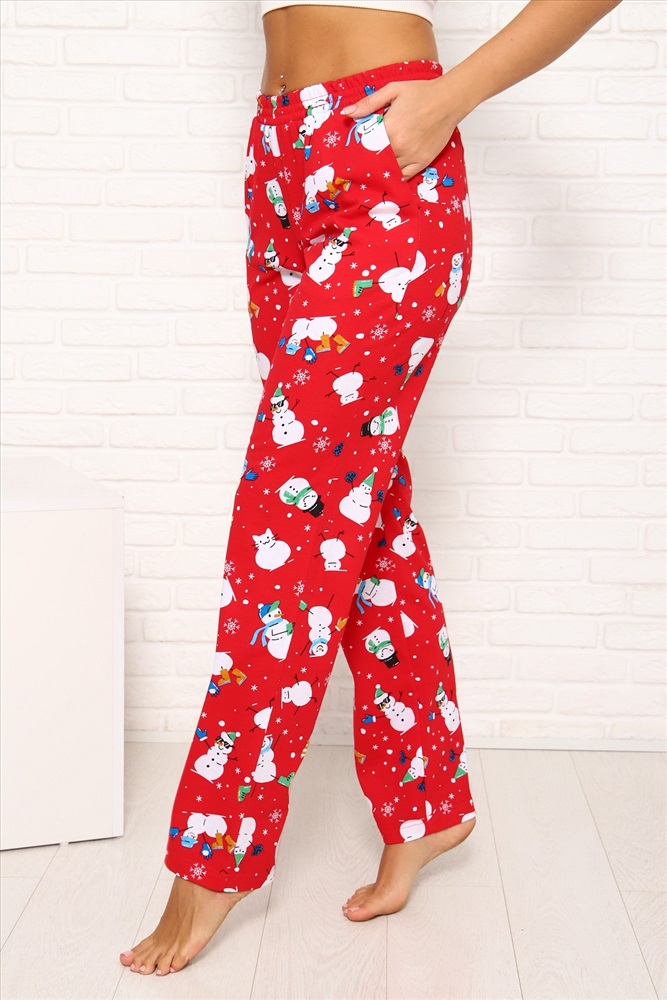 Застежка: без застежки Брюки женские Новогодние прямого кроя, с боковыми карманами, комфортный широкий эластичный пояс. Комфорт 100% хлопка и отличное новогоднее настроение Вам обеспечены. Данная модель отлично комплектуется с лонгсливом (артикул 1035).