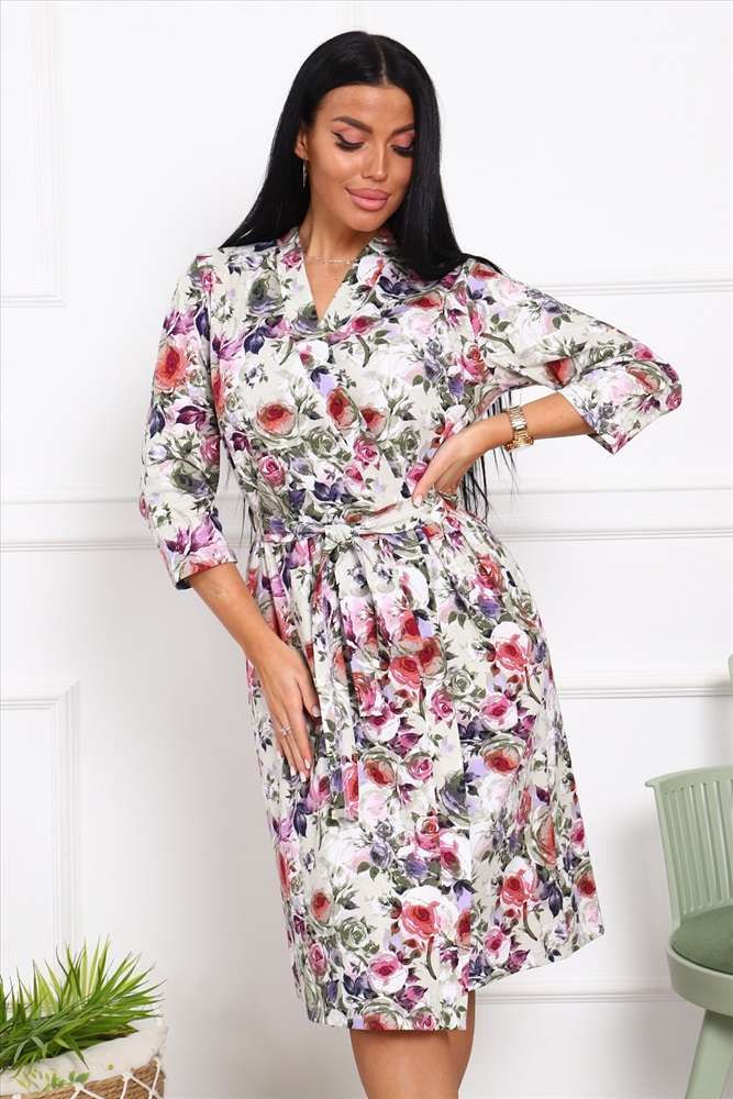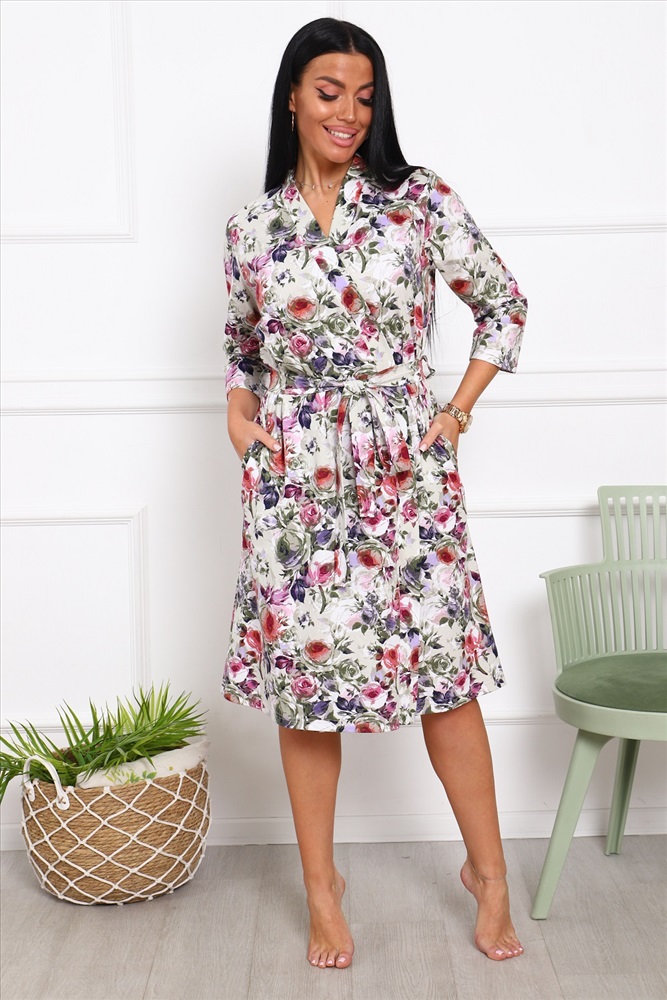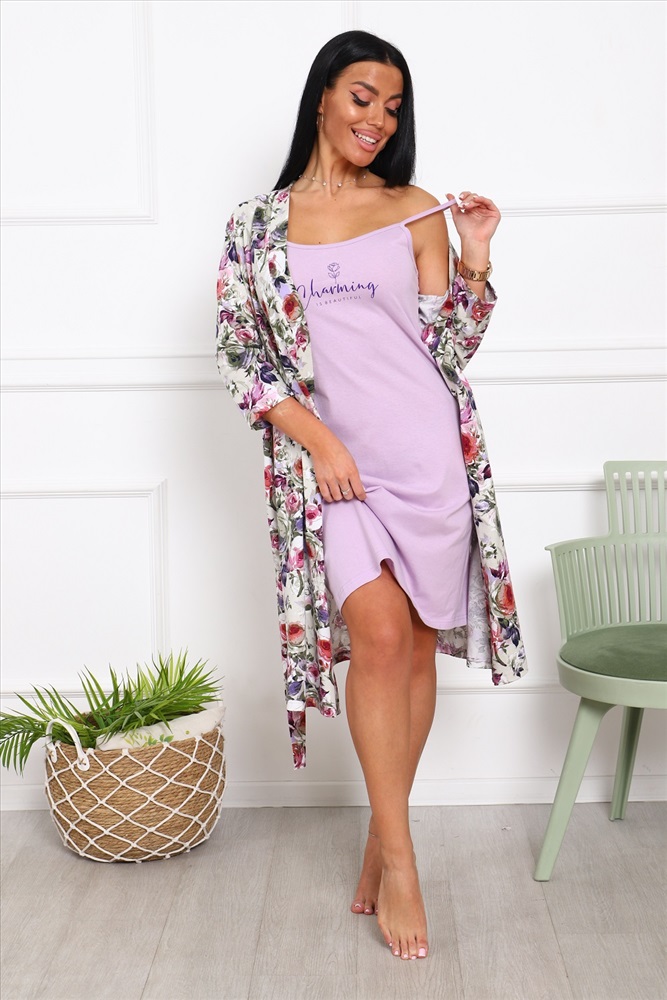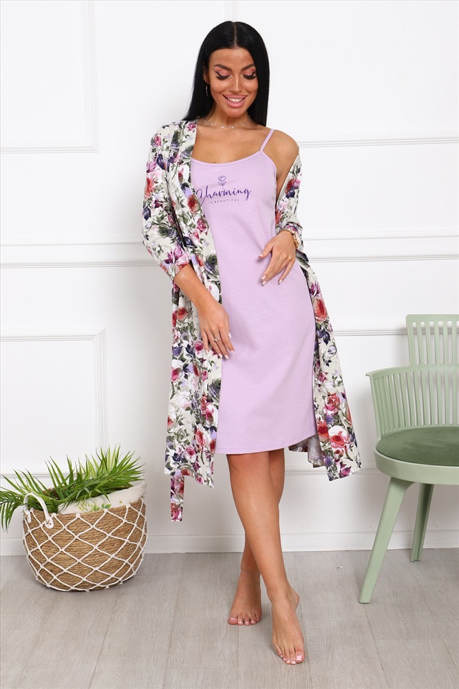Застежка: на запах | пояс Пеньюар с сорочкой на тонких бретелях. Комфорт 100%-ого хлопка и удобная посадка изделий. Женственный нежный принт пеньюара и лаконичный принт на сорочке.