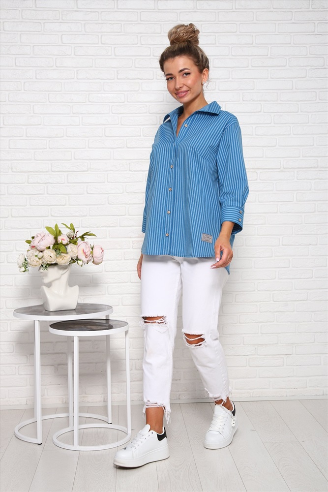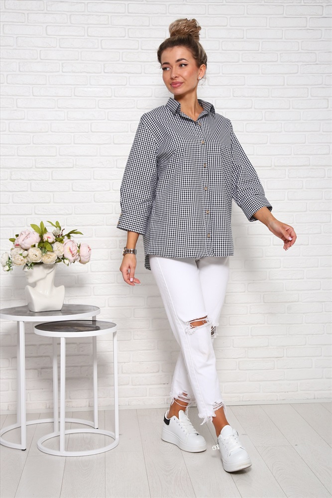 Состав: хлопок 100% Модель: 1051 Рубашка женская Тип товара: рубашка Материал: шотландка | шотландка Бренд: ИП Кичемаев С.К. Карман: без карманов Рейтинг: Рейтинг 4 и выше Рисунок: клетка | полоска Рукав: рукав 3/4 Сезонность: лето | осень | весна | зима Силуэт: прямой | свободный Стиль: повседневный Воротник: рубашечный воротник Застежка: пуговицы Рубашка женская свободного кроя в эко стиле (100% хлопок). Комфортный рукав 3/4 с широким манжетом. Центральная встречная складка на спинке. Воротник со свободной посадкой, без фиксации на пуговицу. Хлопок - 100%, ткань - шотландка (по фактуре похожа на полулён, даёт незначительную усадку, утюжится легко). Стиль, комфорт, отлично сочетается с денимом и классикой. Оптимальный выбор для лета и на все сезоны. Таблица размеров и веса