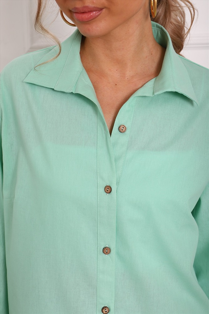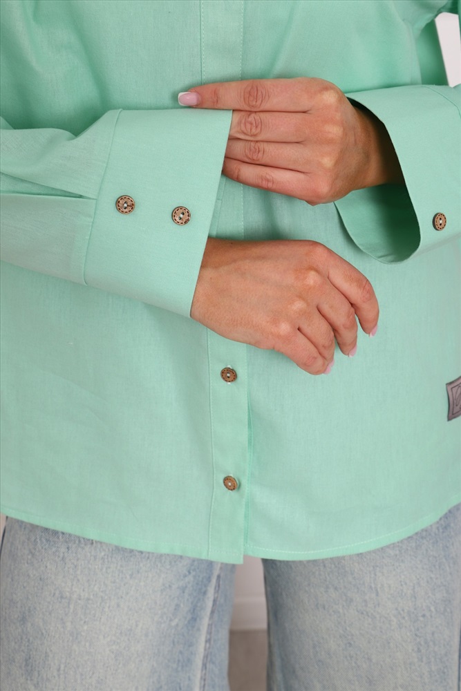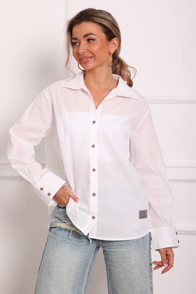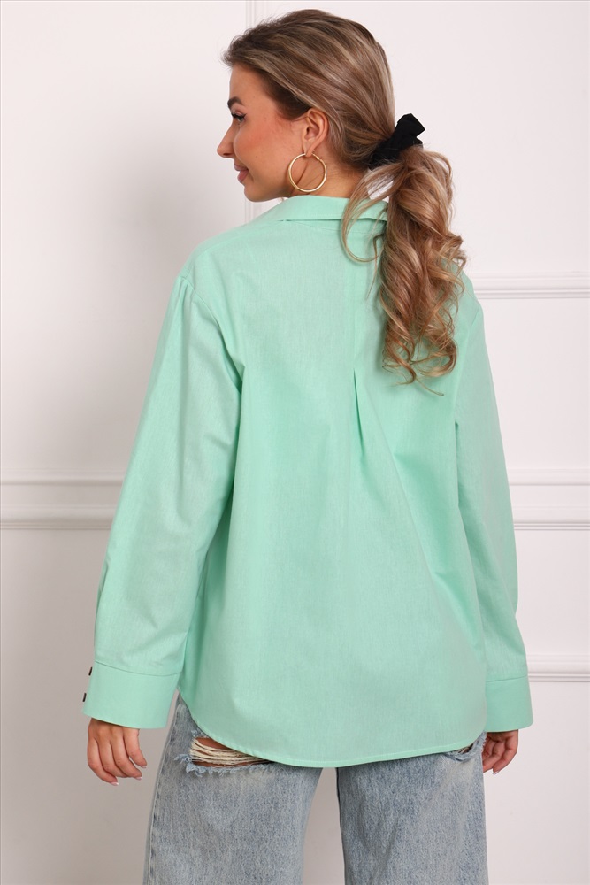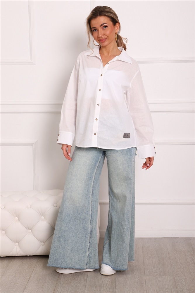 Состав: 100% хлопок Модель: 1052 Рубашка женская Тип товара: рубашка Материал: поплин | поплин Бренд: ИП Кичемаев С.К. Карман: без карманов Рисунок: однотонные Рукав: длинный рукав Сезонность: лето | осень | весна | зима Силуэт: прямой | свободный Стиль: офисный | повседневный Воротник: рубашечный воротник Застежка: пуговицы Рубашка женская свободного кроя в эко-стиле (100% хлопок, с натуральными кокосовыми пуговицами). Комфортный длинный рукав с широким манжетом. Центральная встречная складка на спинке. Воротник со свободной посадкой, без фиксации на пуговицу. Ткань дышащая, хлопок - 100% (по фактуре тонкая, даёт незначительную усадку, стирать рекомендуется в режиме лёгкая глажка, без складок и т.п.). Рубашки белого цвета умеренной просвечиваемости, у цветных рубашек просвечиваемость ниже. Стиль, комфорт, отлично сочетается с денимом и классикой. Оптимальный выбор для лета и на все сезоны. Таблица размеров и веса
