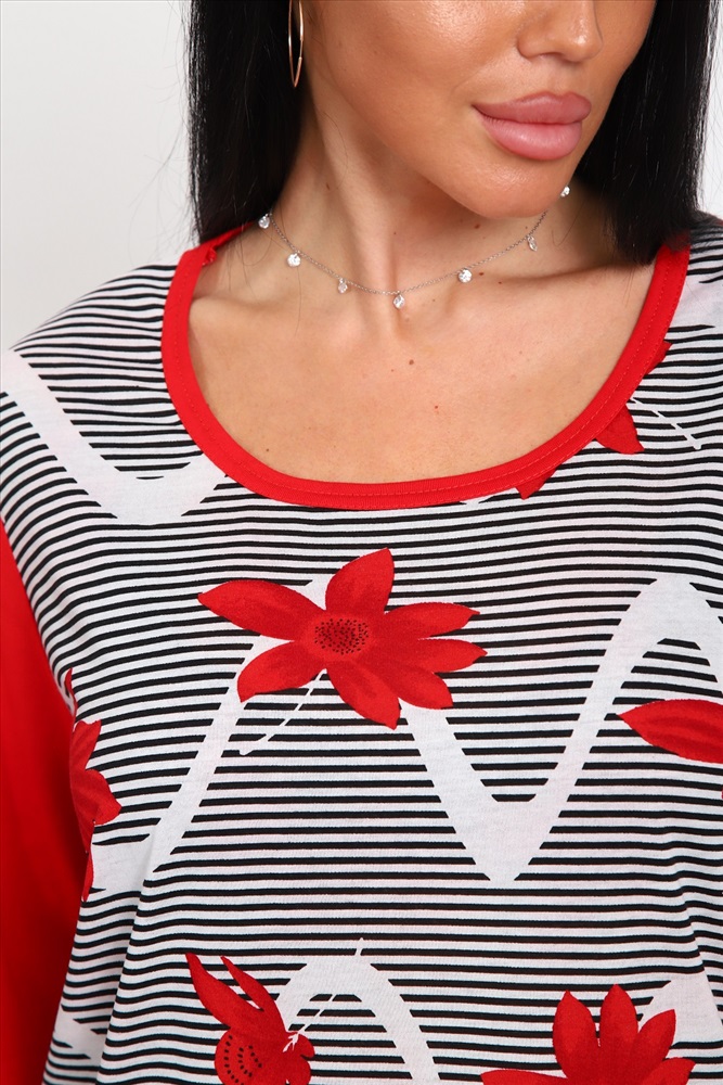 Застежка: без застежки Костюм женский домашний свободного силуэта, состоит из бридж и удлинённой футболки. Хлопок 100%. Комфортно и уютно.