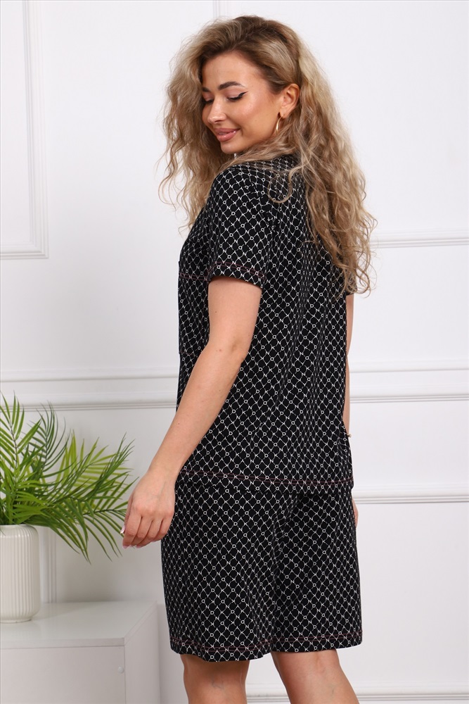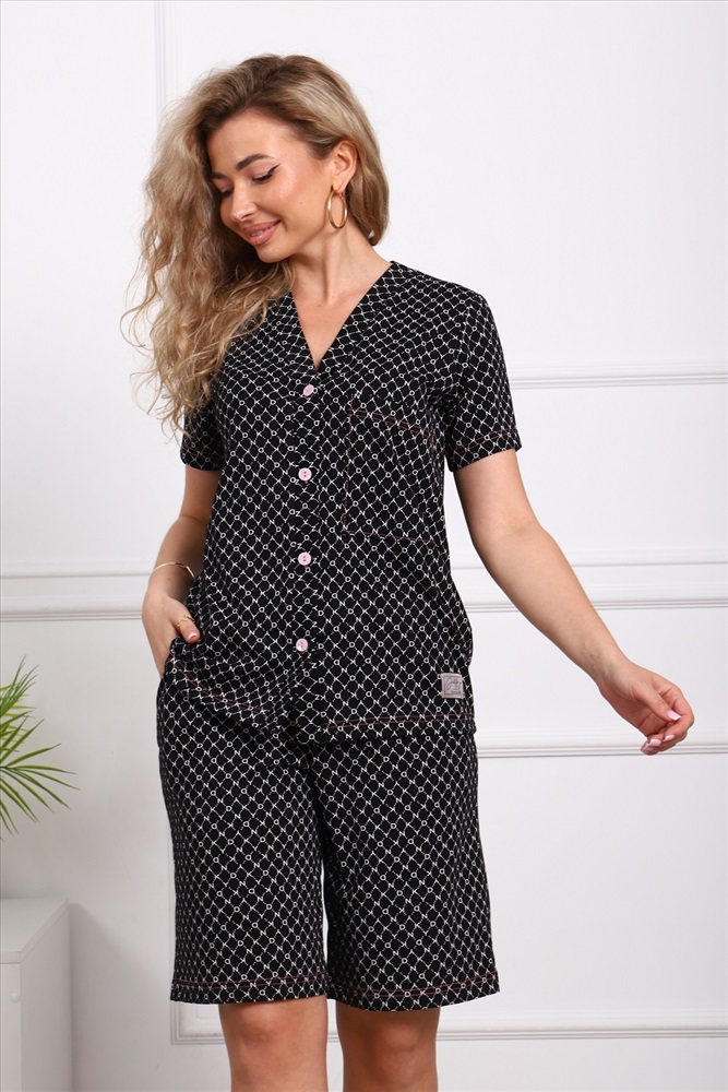 Состав: 100% ХБ Модель: 1067 Костюм женский домашний Тип товара: костюм с шортами Материал: кулирка | кулирка Бренд: ИП Кичемаев С.К. Карман: боковые Назначение: для дома НДС: 5% Особенности: на резинке Отделка: с карманами Посадка: высокая посадка Рисунок: горошек | надпись Рукав: короткий рукав Сезонность: лето | осень | весна | зима Силуэт: прямой | свободный Стиль: домашний Воротник: без воротника Застежка: пуговицы Костюм домашний женский из комфортного трикотажа со стильным принтом, с декоративной отстрочкой. Кофта на пуговицах, с коротким рукавом, с карманом на левой полочке. Шорты средней длины, с боковыми карманами, на эластичном поясе. Элегантный костюм для домашнего уюта из 100%-ого хлопка. Таблица размеров и весакофта