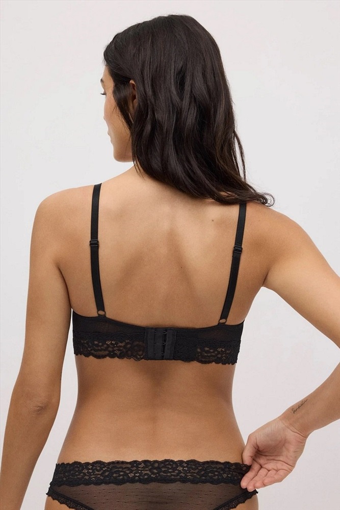 Состав: 87% полиамид, 13% эластан Бюстгальтер бралетт с чашкой на тонком поролоне без косточек. Выполнен из плюмети и кружева. Несъемные регулируемые бретели. Сочетайте его с трусиками из коллекции и завершите образ нижнего белья.