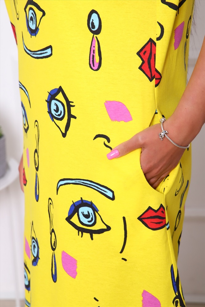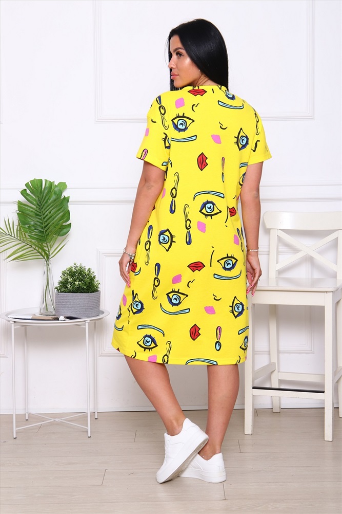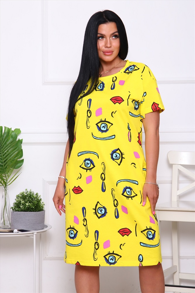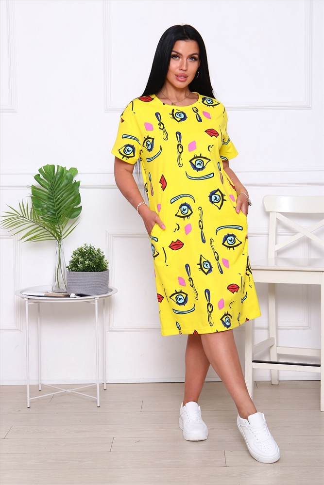Застежка: без застежки Туника- платье женская с короткими рукавами и боковыми карманами. Яркая модель для лета.