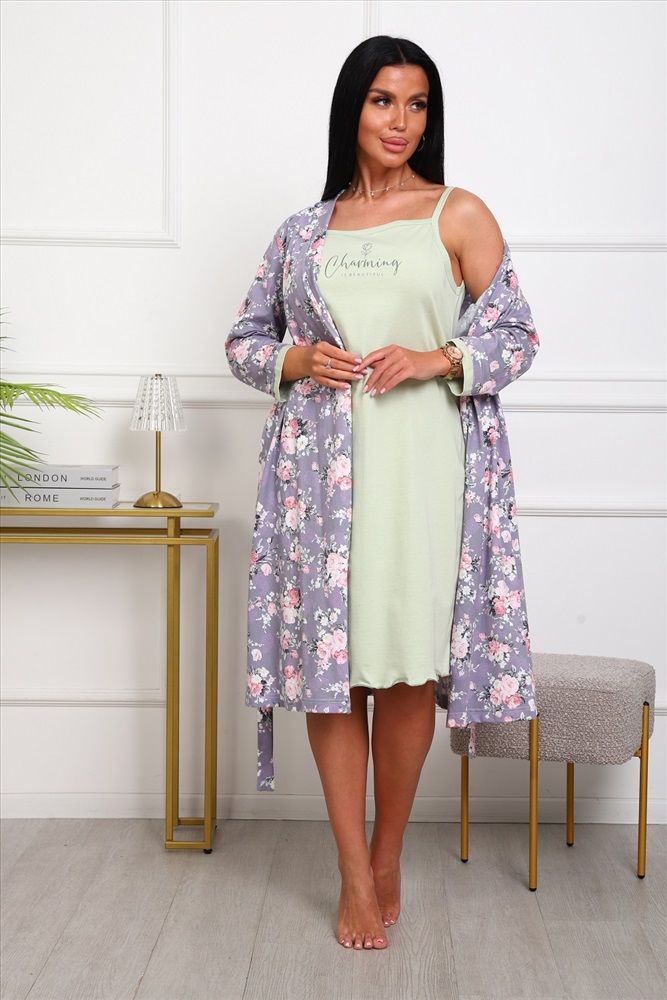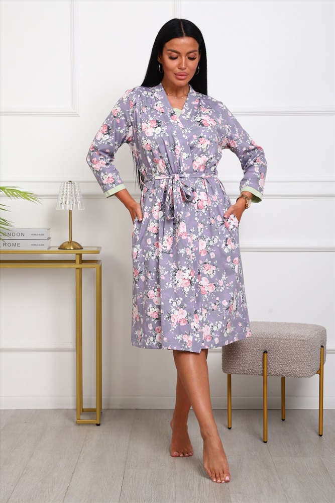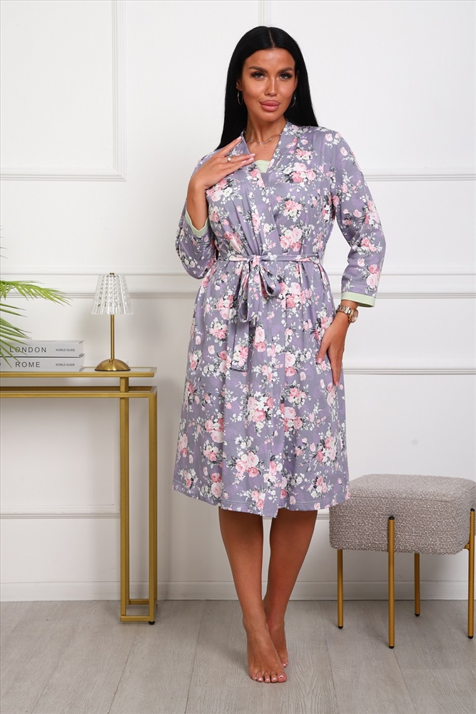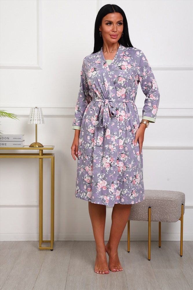 Застежка: на запах | пояс Пеньюар с сорочкой на тонких бретелях. Пеньюар запашной, с боковыми карманами, с поясом. Комфорт 100%-ого хлопка и удобная посадка изделий. Женственный нежный принт пеньюара и лаконичный принт на сорочке создают стильный и уютный образ.