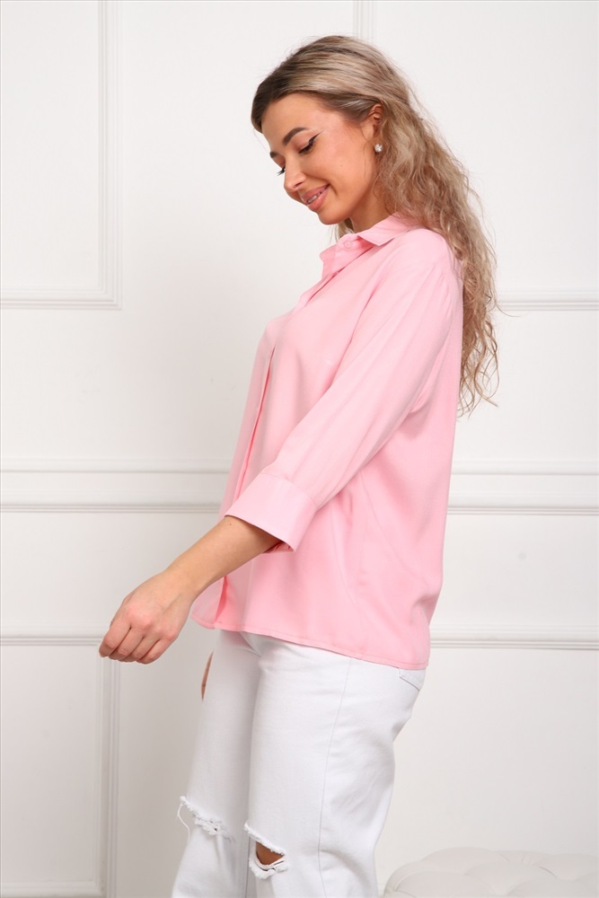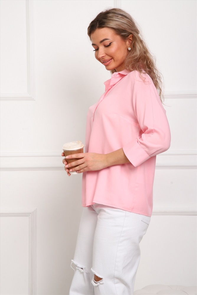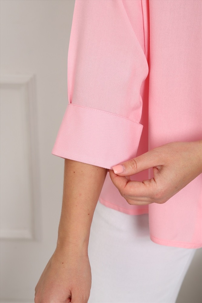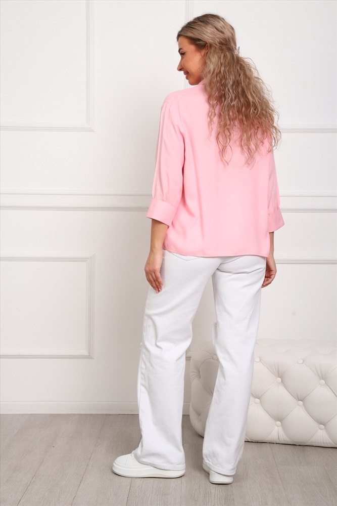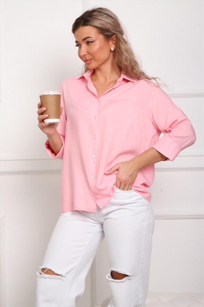 Состав: вискоза 100% Модель: 1097 Рубашка женская Тип товара: рубашка Материал: штапель | штапель Бренд: ИП Кичемаев С.К. Карман: без карманов Отделка: с манжетами Рисунок: однотонные Рукав: рукав 3/4 Сезонность: лето | осень | весна | зима Силуэт: свободный Стиль: повседневный Воротник: рубашечный воротник Застежка: пуговицы Рубашка женская свободного кроя нежно-розового освежающего цвета. Комфортный рукав 3/4 с широким манжетом. Ткань - штапель, состав - вискоза 100%. Ткань приятна в ношении, обладает высокой гигроскопичностью, дышащая. Легко утюжится. Таблица размеров и веса