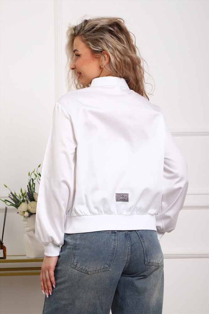 Сезонность: лето | осень | весна | зима Рубашка женская в спортивном стиле (силуэт - бомбер), из премиального сатина (100% хлопок). Новый трендовый силуэт выделяют её среди других белых рубашек. Низ изделия и манжеты из трикотажного кашкорсе. Два нагрудных кармана. Данная рубашка - универсальный выбор и для делового стиля (отлично сочетается с классическими юбками и брюками), и для повседневной одежды (сочетается с джинсами, спортивными штанами). В размерной сетке в объёме бёдер указанно два измерения: низ изделия в присборенном состоянии - низ изделия при растянутой резинке.