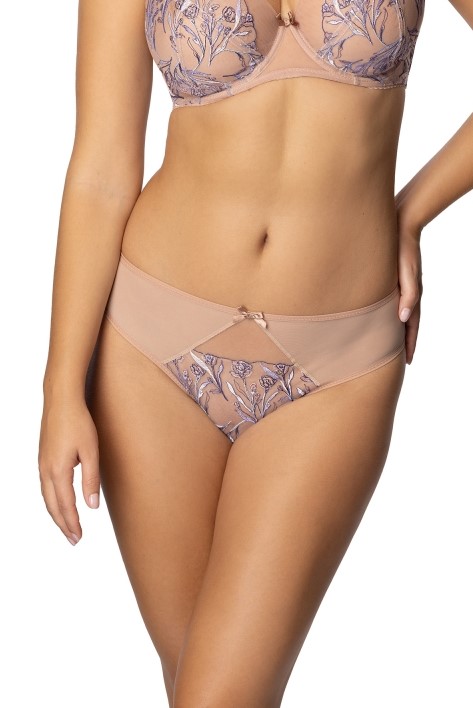 Трусы классические женские арт. SF166/10 для пляжного отдыха, с низкой линией талии, спереди на стреч-подкладке, по бокам дополнительные широкие завязки цвета меди. Эластичный трикотаж полностью покрыт змеиным принтом, создающим на поверхности ткани тонкую структуру, а сам костюм красиво переливается металлическим медным блеском. Отлично сочетаются с бюстом SK166.