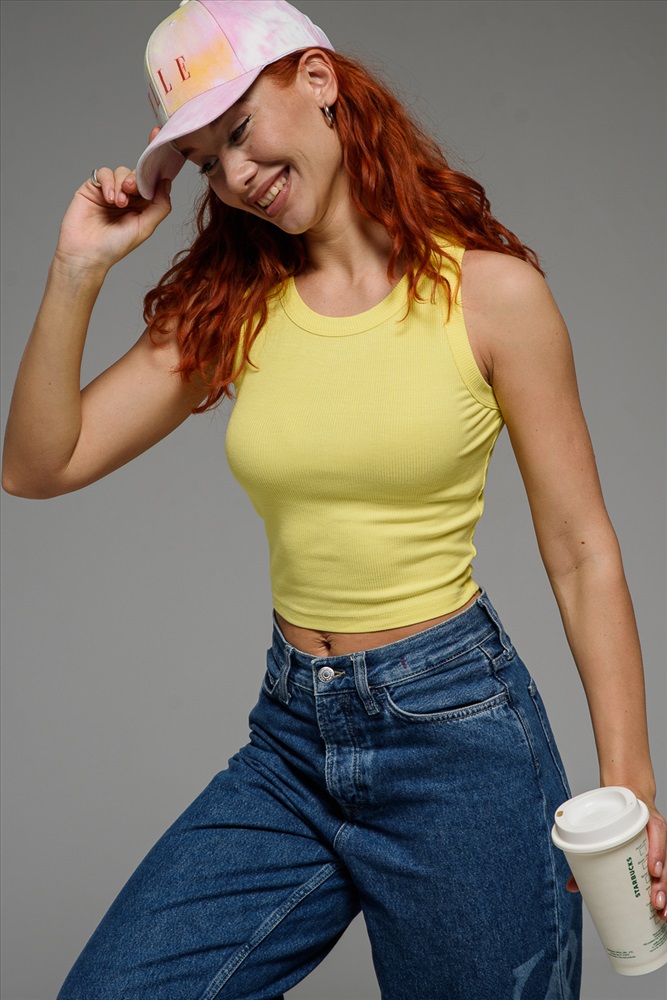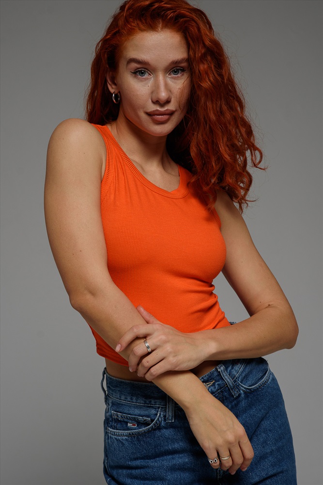 Стиль: повседневный | спортивный Базовый топ укороченной длины. Выполнен из фактурной ткани в рубчик из 100% полиэстера. Облегающий крой отлично садится по фигуре, подчеркивая её достоинства. Круглая горловина, широкие бретели, не просвечивает, топ максимально комфортный в носке.