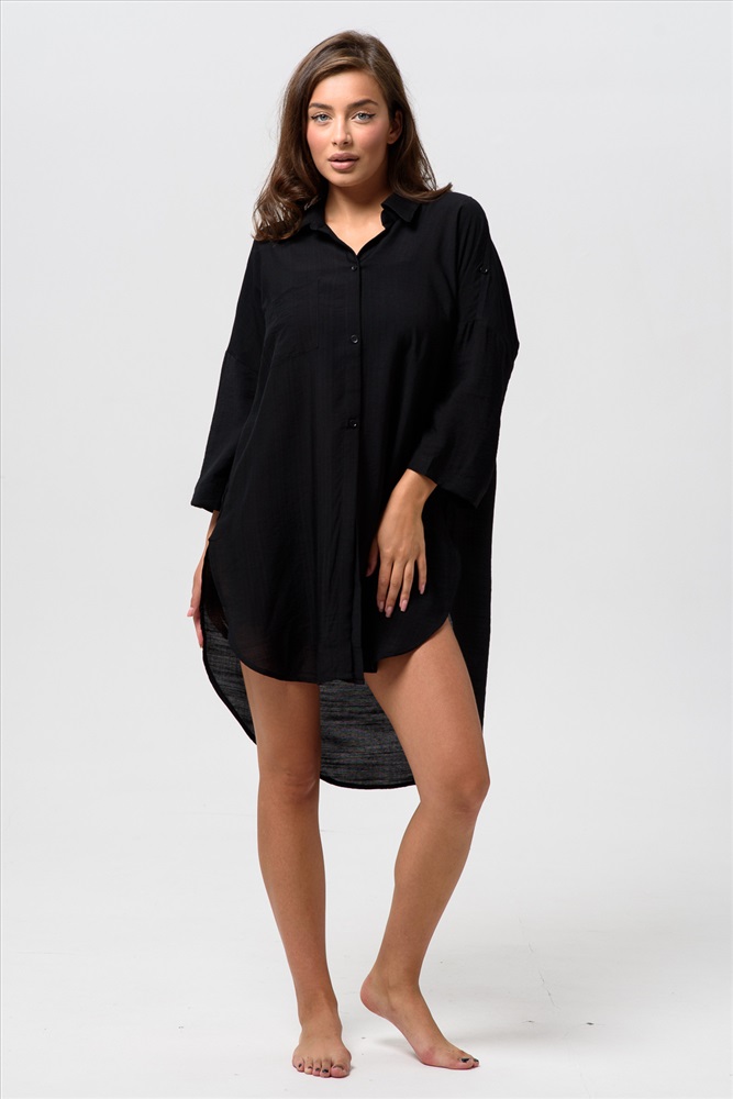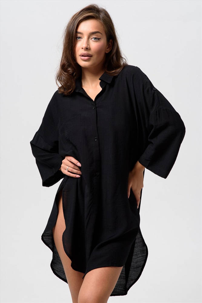 Состав: 100% хлопок Модель: 14491 туника женская Тип товара: туника Бренд: Натали Суслова Карман: накладные Отделка: с карманами | с патами Рейтинг: Рейтинг 4 и выше Рисунок: однотонные Рукав: рукав 3/4 Сезонность: лето Силуэт: прямой | свободный Стиль: пляжный Воротник: отложной воротник Застежка: пуговицы Пляжная туника женская идеальный выбор для летнего отдыха у воды. Свободный крой обеспечивает комфорт и свободу движений, позволяя чувствовать себя непринужденно в любую погоду. Она мягко касается кожи и не вызывает дискомфорта в жаркие дни. Полупрозрачная ткань добавляет легкости образу и позволяет элегантно скрыть купальник, становясь стильной накидкой на него. Ткань марлевка. Низ туники удлиннен сзади. Таблица размеров и веса