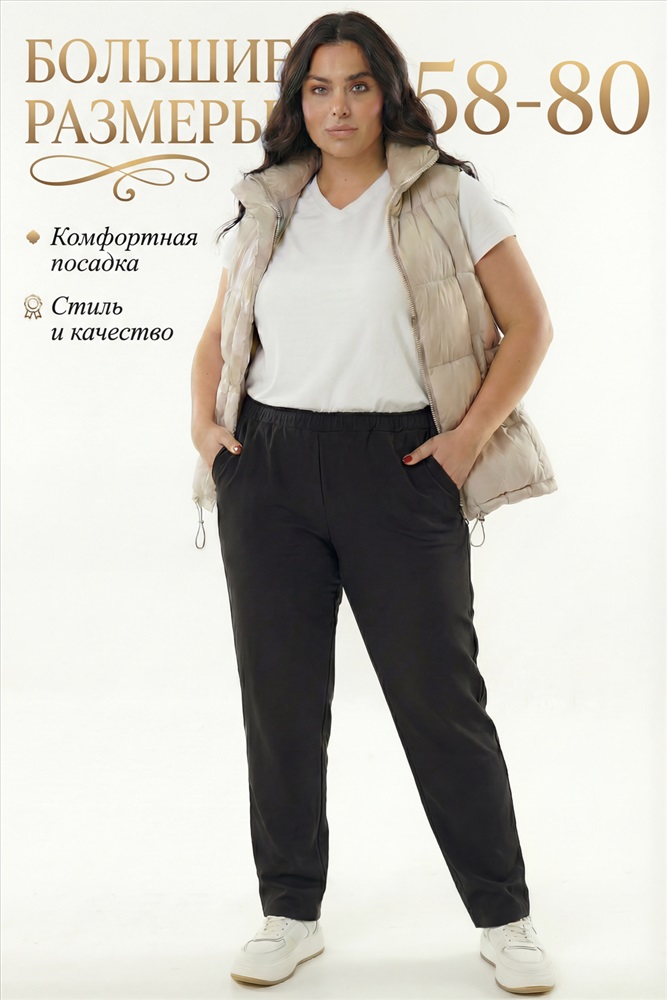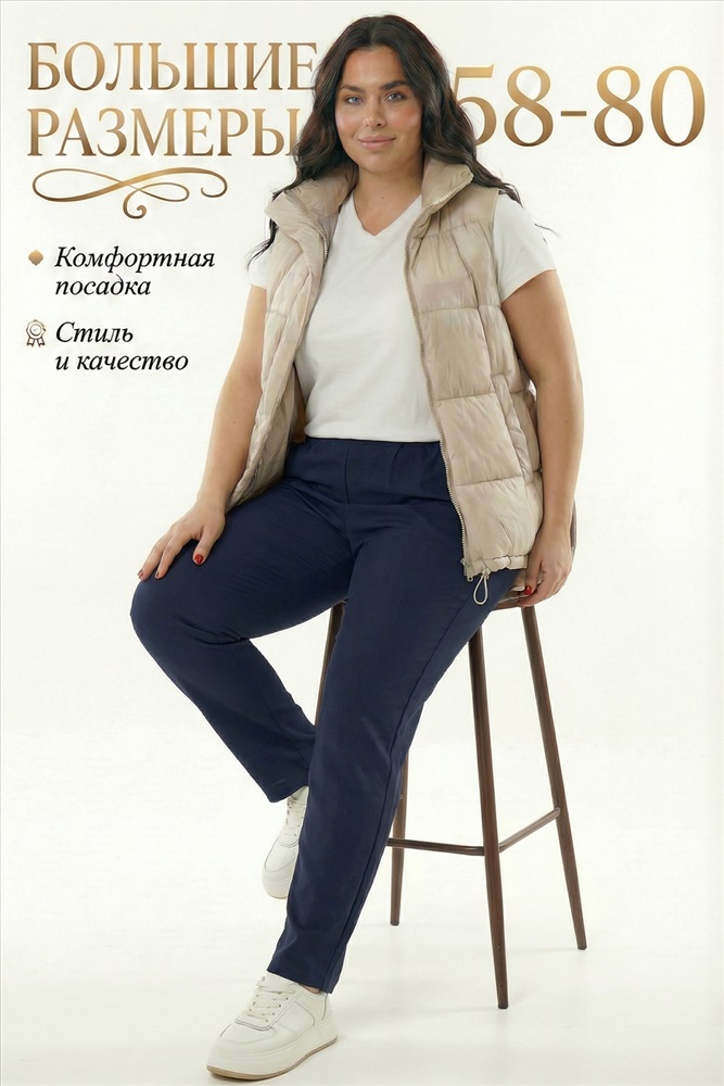 Застежка: без застежки Женские осенние брюки больших размеров на резинке - это отличный выбор для создания комфортного и стильного гардероба. Их главными преимуществами являются дышащие материалы, которые обеспечивают максимальный комфорт, а также универсальность такие брюки отлично подходят для ношения в осенний и весенний периоды.