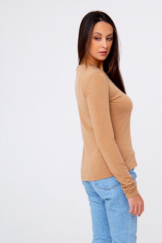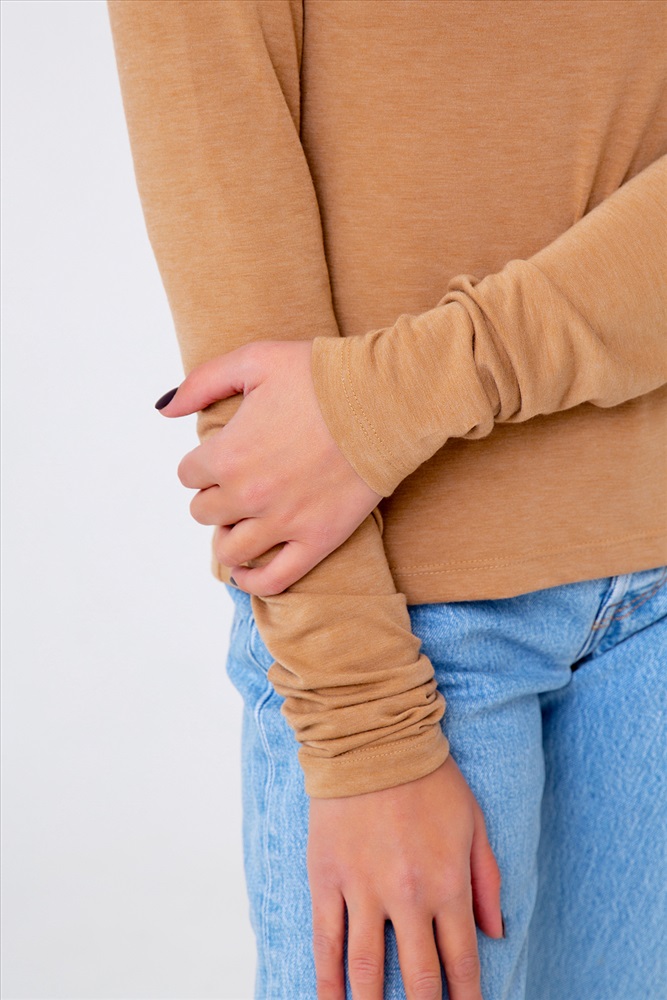 Застежка: без застежки Стильный лаконичный джемпер в нюдовом оттенке. Модель выполнена из приятого к телу трикотажного полотна. Рукав удлиненный. Горловина округлая. Модель идеально подойдет на каждый день. Состав: 85% вискоза, 10% полиэстер, 5% эластан. Длина изделия 59 см. Рост модели на фото 173 см.