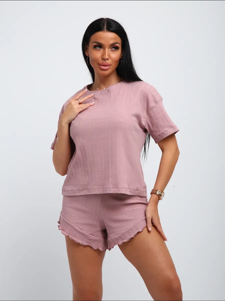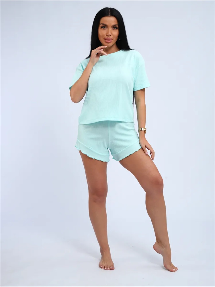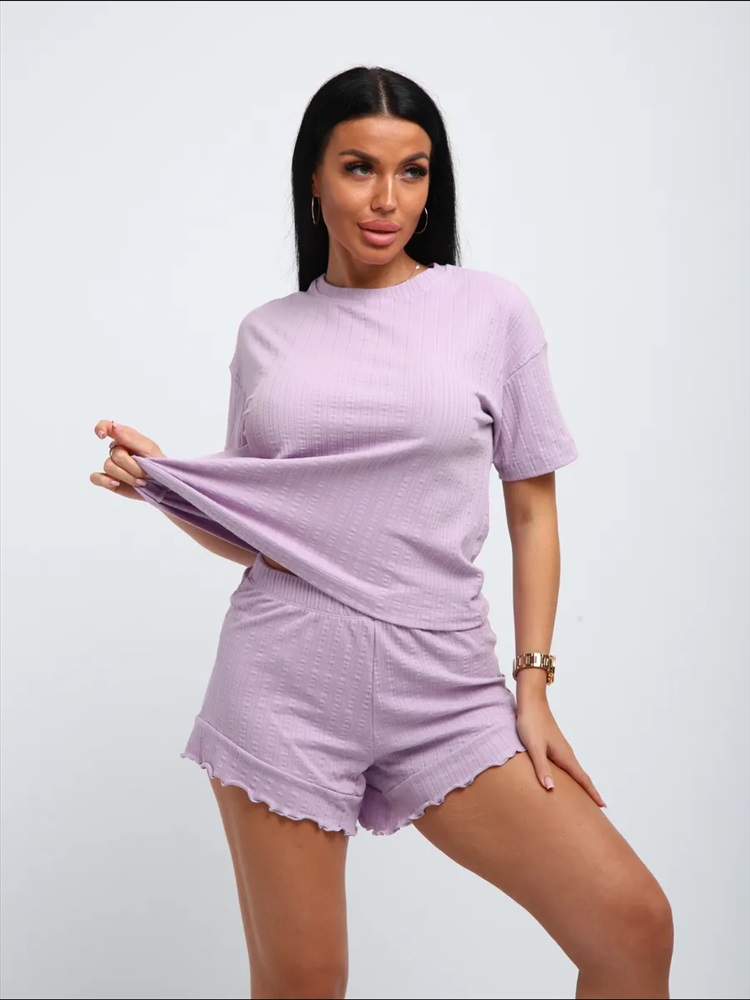 Сезонность: лето | осень | весна | зима Летний костюм женский с шортами домашний - хит этого сезона. Костюм домашний женский летний выполнен из легкого, тонкого, но прочного трикотажного полотна, в составе которого 95% хлопок. Повседневное изделие включает в себя шорты и футболку. Мягкая хлопковая ткань костюма приятна к телу, позволяет коже дышать, не деформируется и не сковывает движения. Шорты свободные без карманов имеют, широкую резинку, которая не давит на живот, что позволяет чувствовать себя комфортно. Базовая футболочка свободного кроя имеет среднюю длину и короткий рукав. Пижама женская с шортами прямого кроя настолько универсальная, что можно использовать как в качестве домашней одежды, так и для активного отдыха. Благодаря своему фасону костюм подходит дамам всех возрастов. Широкая размерная сетка позволит подобрать модный образ для женщин больших размеров, полных, высоких и невысоких, среднего роста. Порадуй себя, подруг и любимую хорошим подарком на 8 марта! Порадуй себя, бабушку и маму подарком. Пижама женская это идеальное сочетание комфорта, стиля и универсальности. В линейке представлены большие размеры, позволяющие каждой выбрать свой идеальный вариант. Особое внимание уделено отличному выбору для будущих мам. Она идеально подойдет как одежда для дома. Изделие легко комбинируется с верхней одеждой. Костюм домашний станет незаменимым элементом базового гардероба, а также отличной идеей для подарка для женщин практичного, красивого и уместного в любое время года. Для семейных образов под формат family look костюм можно сочетать с вещами, подобранными детям.