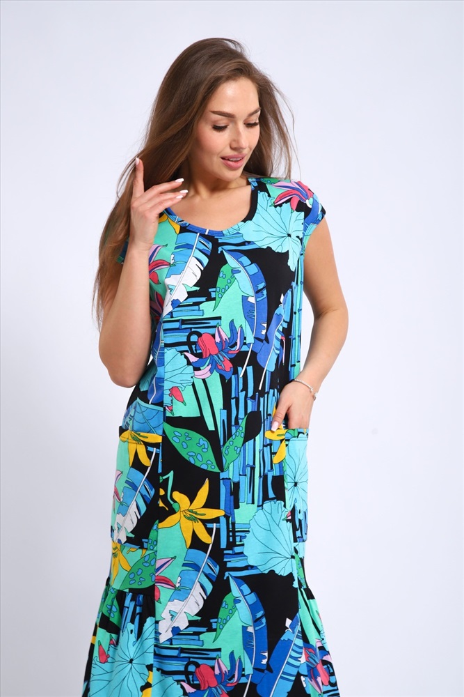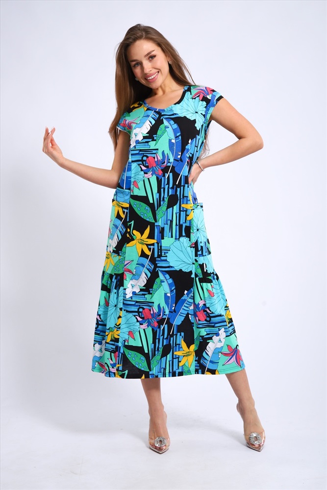 Состав: 100% Хлопок Модель: 162 Сарафан женский Тип товара: сарафан Материал: кулирка | кулирка Бренд: POLINA Длина: средняя длина Карман: накладные Отделка: с карманами Рисунок: цветы Рукав: короткий рукав Сезонность: лето | осень | весна Силуэт: полуприлегающий | расклешенный Стиль: повседневный Воротник: без воротника Застежка: без застежки Сарафан женский выполнен из трикотажного полотна кулирка. Сарафан полуприлигающего силуэта, расширенный к низу. На полочке подрезные бочка. Накладные карманы в бочках, низ бочка с широкой оборкой, спущенное плечо, углубленная пройма, горловина и пройма окантованы. Таблица размеров и веса
