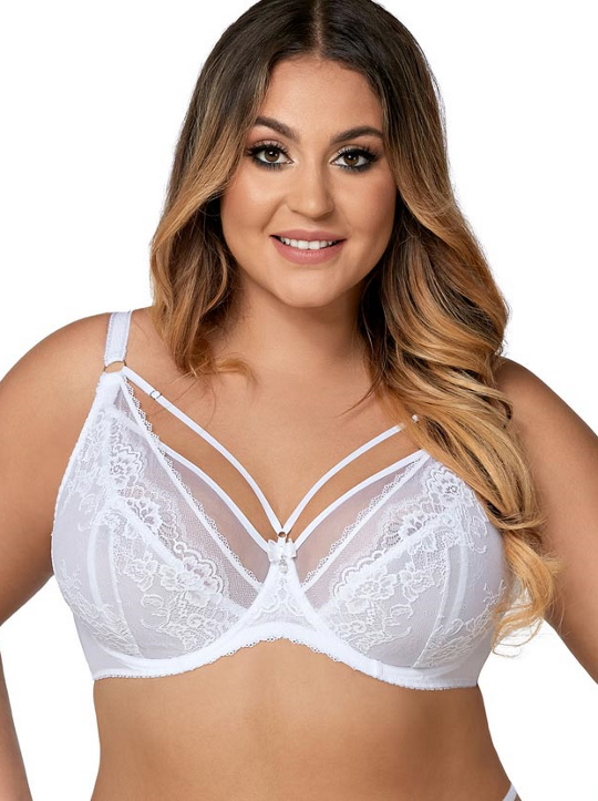 Состав: полиамид 90%, эластан 10% Бюстгальтер 1824 M выполнен на косточках, чашки мягкие, шитые из сетки телесного цвета и чёрного кружева-в чёрном варианте, и белой сетки и белого кружева (в белом варианте), бретельки не отстёгиваются, регулируются по длине, в зоне декольте несъёмные декоративные бретели. На спине застёжка на удлинитель, количество крючков в ряду застёжки увеличивается пропорционально размеру бюстгальтера. Бюстгальтер идеально сочетается с трусиками арт. 1824