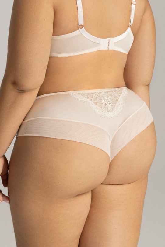 Трусики бразильяна со средней линией талии АVA 2147 выполнены в цвете marschmallow (зефир) спереди из сетки и нежного цветочного кружева цвета сладкого зефира, с ресничками, спинка из трикотажа, с V-образной кружевной вставкой, проймы ног из сетки, сложенной вдвое. Ластовица проложена 100% хлопком. Трусики идеально комплектуются с бюстгальтером арт. 2147.