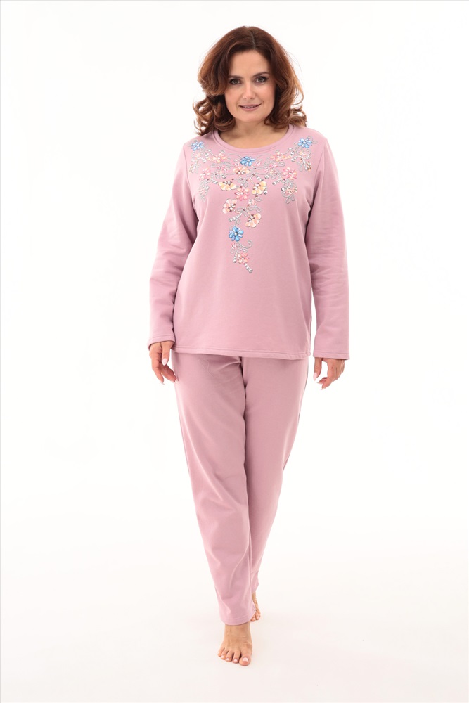 Состав: Хлопок 100%. Модель: 21596 Пижама Тип товара: пижама с брюками Материал: футер 2-х нитка с начесом | футер 2-х нитка с начесом Бренд: Натали Суслова Назначение: для дома НДС: 5% Особенности: на резинке | с начесом Отделка: с печатью Посадка: высокая посадка Рейтинг: Рейтинг 4 и выше Рисунок: цветы Рукав: длинный рукав Сезонность: осень | весна | зима Силуэт: прямой Стиль: домашний Женская пижама из футера 2-х нитки с начёсом. Дизайн позволяет использовать данную модель как пижаму для сна, так и в качестве костюма для дома. Брюки и лонгслив свободного кроя. Нежный изящный принт в виде россыпи жемчуга и цветов. В измерениях обхвата талии указан размер резинки, которая растягивается без проблем до стандартных измерений фигуры. Очень удобная высокая посадка брюк. Длинные рукава для уюта и тепла. Таблица размеров и весакофта