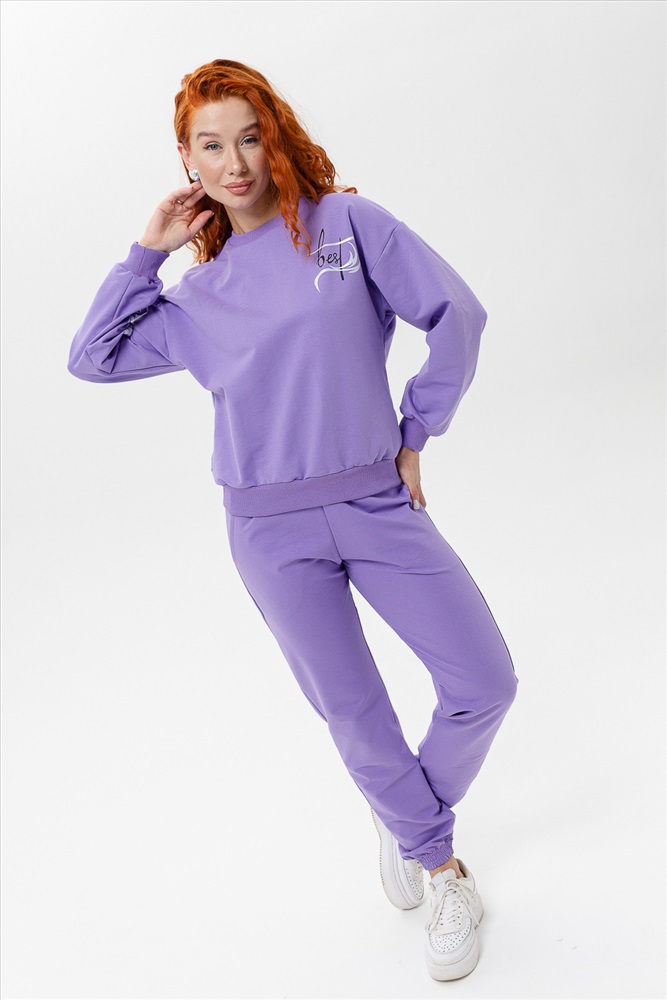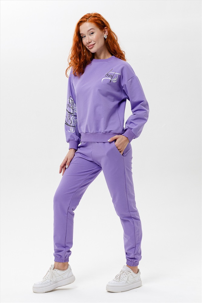 Состав: Хлопок 72%, п/э 20%, лайкра 8%. Модель: 21612 Костюм с брюками Тип товара: костюм с брюками Материал: футер с лайкрой 2-х нитка | футер с лайкрой 2-х нитка Бренд: Натали Суслова Карман: боковые Особенности: на резинке Отделка: с карманами | с манжетами | с печатью Посадка: средняя посадка Рисунок: надпись Рукав: длинный рукав Сезонность: лето | осень | весна | зима Силуэт: свободный Стиль: повседневный Воротник: без воротника Застежка: без застежки Костюм женский из футера с лайкрой без начёса. Он объединяет в себе два важных качеста-комфорт и красоту, к которым женщины стремятся в повседневном образе. Свободные брюки на резинке, с боковыми карманами. Толстовка свободного кроя обработана резинкой кашкорсе. Костюм для активного отдыха, спорта, поездок и путешествий. Оригинальный принт с надписью Лучший выбор. Таблица размеров и весакофта