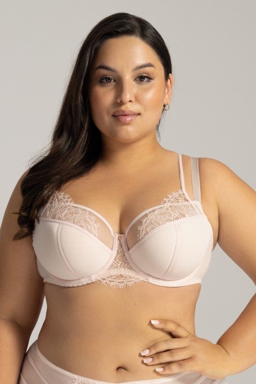 Бюстгальтер АVA 2163 PU SERENITY выполне на основе бюста 1030 в цвете powdery (пудра) на косточках, чашки шитые, нижняя часть на тонком поролоне, внутренняя сторона прошита хлопковым трикотажем, внешняя стороная покрыта сеткой, верхняя часть из сетки, снаружи вторым слоем кружевные вставки с ресничками на тонких бретелях. Пояс из стабилизирующей сетки. Бретельки не отстёгиваются, регулируются по длине, на спине застёжка - удлинитель на 2 или 3 крючках, фурнитура металлическая цвета меди. Нижнее белье пудрового цвета – незаменимая вещь в вашем весенне-летнем гардеробе! Бюстгальтер идеально комплектуется трусиками арт. 2163, 2164.