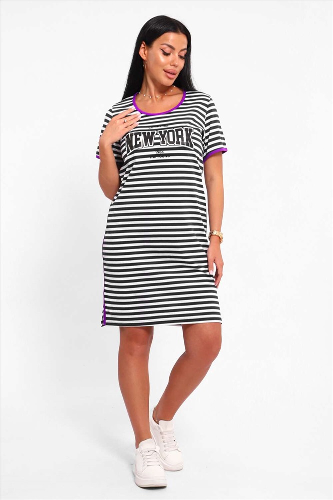 Состав: хлопок 100% Модель: 24415 Туника женская New York Тип товара: туника Материал: кулирка пенье | кулирка пенье Бренд: Натали Суслова Карман: без карманов Назначение: для дома НДС: 5% Рисунок: надпись | полоска Рукав: короткий рукав Сезонность: лето | осень | весна | зима Силуэт: полуприлегающий Стиль: домашний | повседневный Воротник: без воротника Застежка: без застежки Туника - для отдыха, поездки на море и летних прогулок. Легкая ткань, натуральный хлопок, который приятен к телу и дарит чувство легкости. Платье летнее трикотажное прямого силуэта с коротким рукавом. Горловина декорирована цветной вставкой. Платье пляжное летнее дополнено современным рисунком и контрастными деталями по бокам. Для практичности туника слегка удлинена. Набивная ткань в полоску всегда актуальна и еще долгое время будет любимой всеми модницами. Идеальная посадка по фигуре скроет все несовершенства и подчеркнет достоинства. Туника подойдет для женщин, для девушек и для девочек любого типа фигуры, на большие размеры. Женское платье для дома, для дачи, для отдыха из качественной вискозы, которая не линяет, гипоаллергенно, позволяет коже дышать на протяжении всего дня. Также футболка платье в полоску можете купить как подарок. Таблица размеров и веса