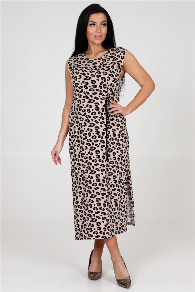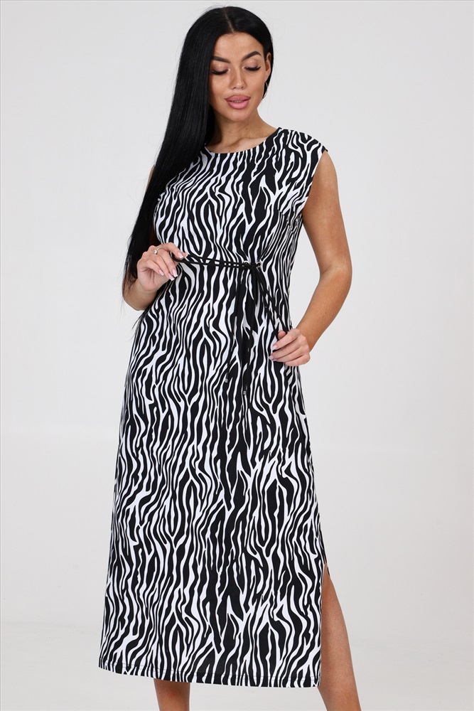 Застежка: без застежки Платье женское из кулирки. Платье свободного покроя со спущенной проймой, с боковыми разрезами, с вытачками.