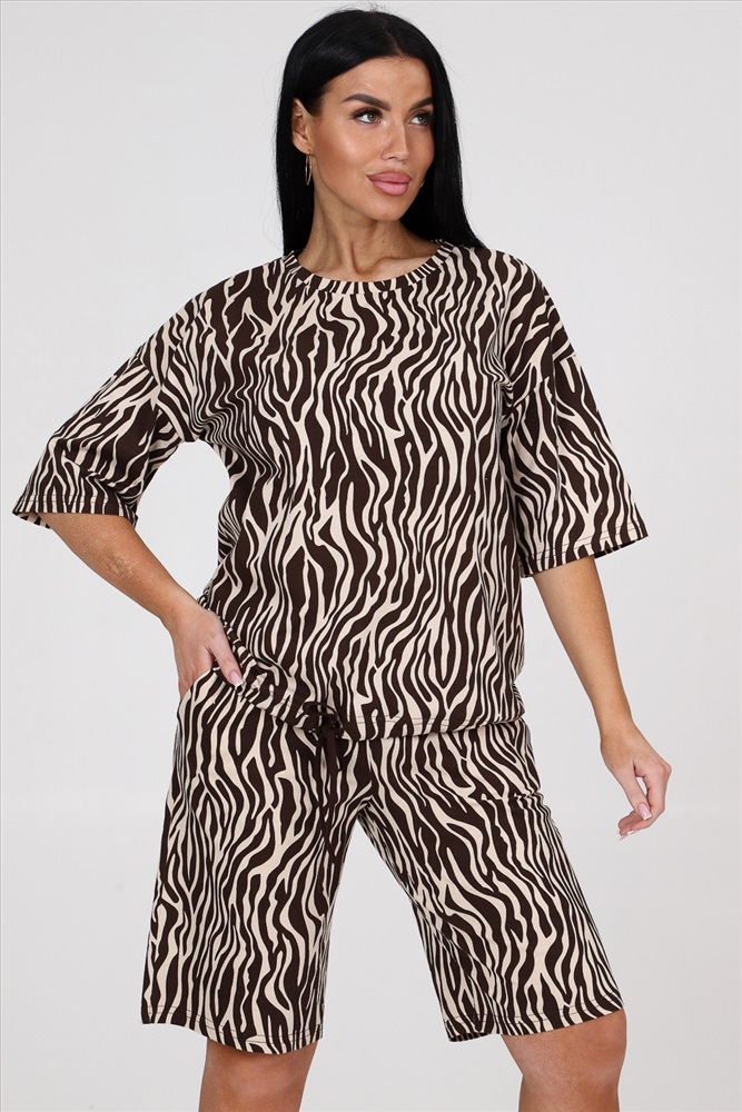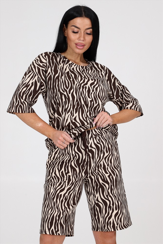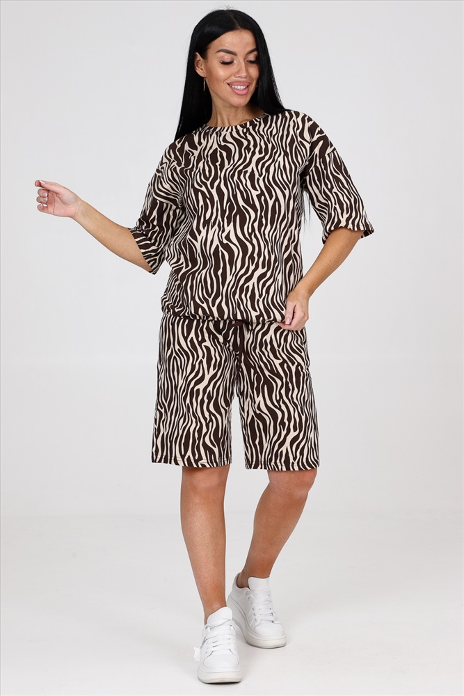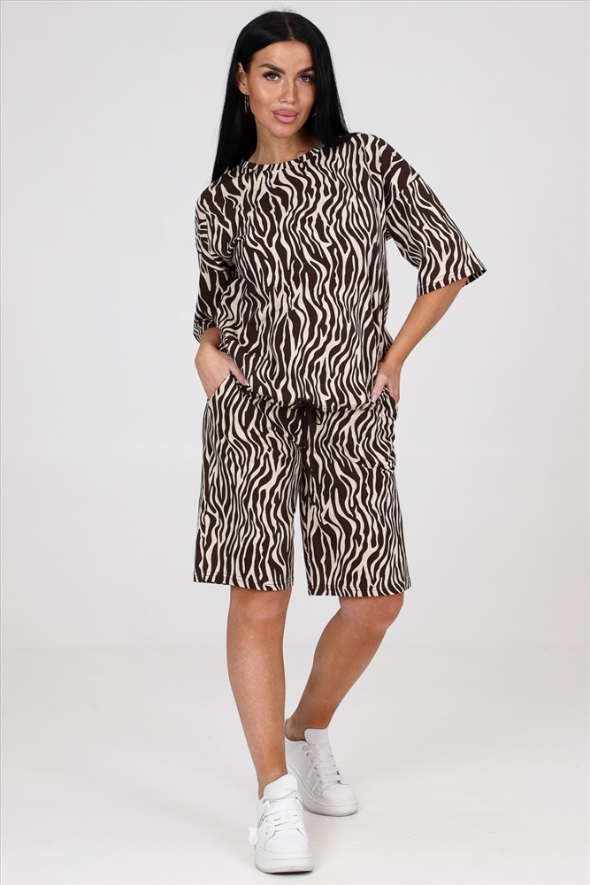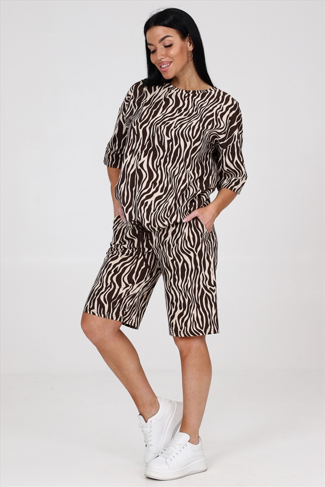 Состав: хлопок 100% Модель: 24793 костюм Тип товара: костюм с шортами Материал: кулирка | кулирка Бренд: Натали Суслова Карман: боковые Особенности: на резинке Отделка: с карманами | со шнурком Посадка: высокая посадка Рисунок: анималистичный Рукав: рукав 3/4 Сезонность: лето | весна Силуэт: свободный Стиль: повседневный Воротник: без воротника Застежка: без застежки Костюм женский из кулирки. Костюм состоит из блузы и шорт. Блуза свободного покроя, рукав втачной, по низу изделия кулиса. Шорты на притачном поясе с карманами. Таблица размеров и весаблуза