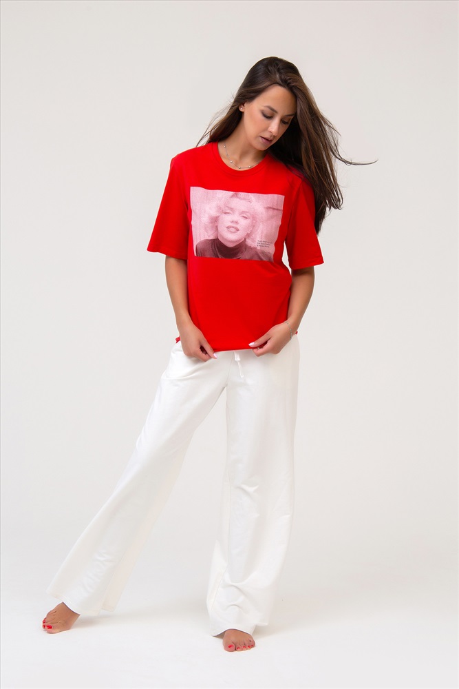 Состав: 100% хлопок Модель: 253RED Футболка трикотажная Тип товара: футболка Материал: кулирка | кулирка Бренд: Рапоза Длина: средняя длина Отделка: с печатью Рисунок: крупный принт | разное Рукав: короткий рукав Сезонность: лето | осень | весна Силуэт: прямой Скидка: любая | от 10% и больше | от 30% и больше Стиль: молодежный | повседневный Яркая футболка с крупным печатным принтом, абсолютно, не оставит Вас незамеченной. Модель выполнена в сочном насыщенном цвете, что актуально для текущего сезона. Рукав короткий. Вырез горловины округлый. Материал - мягкое и эластичное трикотажное полотно. Состав: 100% хлопок. Длина изделия 68 см. Рост модели на фото 173 см Таблица размеров и веса