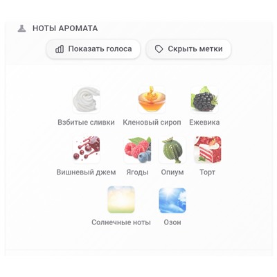 Композиция аромата: Французские пирожные, кленовый сироп, вишневый джем, опиум, ягоды, солнечные ноты, взбитые сливки, ежевика, озон.