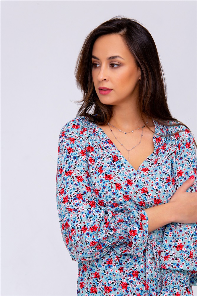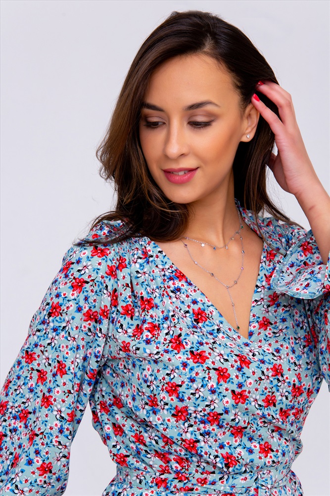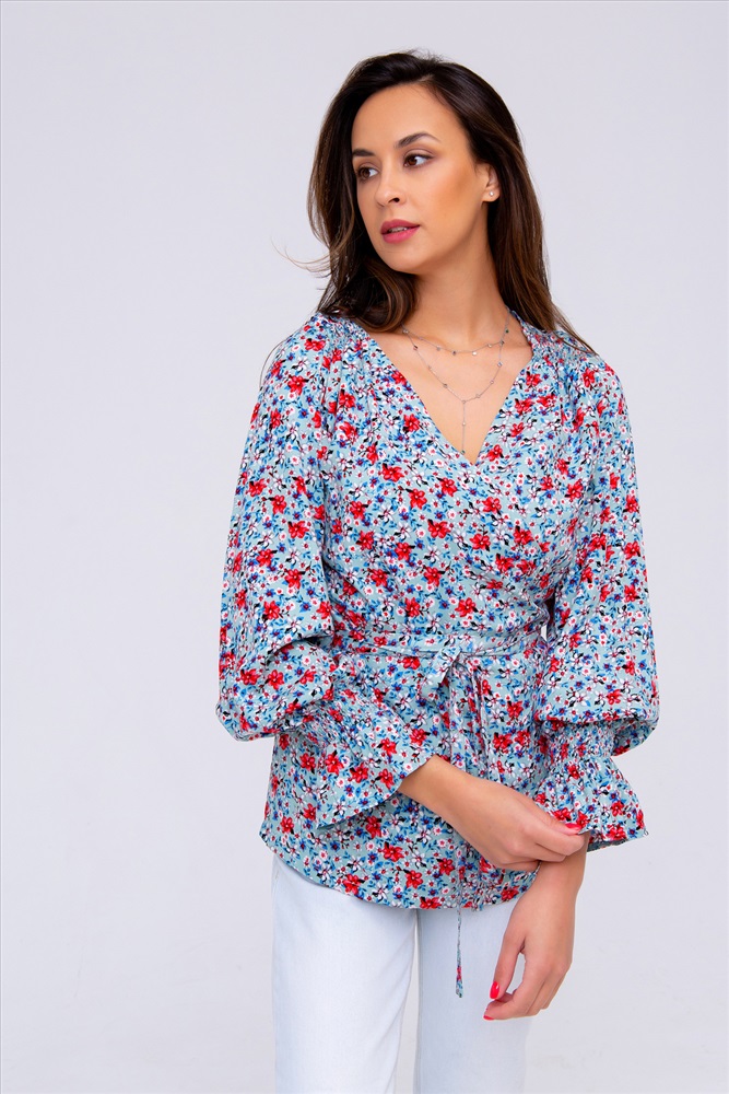 Застежка: на запах | пояс Летняя премиум коллекция от Рапоза! Только трендовые тенденции этого лета: свободные, летящие модели, сочные цвета, натуральные ткани, стильный крой! Цветочный принт подчеркнет вашу женственность, а оригинальный вырез с запахом придаст соблазнительности! Кокетливо выполненные рукава добавят легкости, ведь именно этого больше всего хочется летом. Изысканная блузка в романтическом стиле легко сочетается с прямой юбкой или брюками-дудочками.