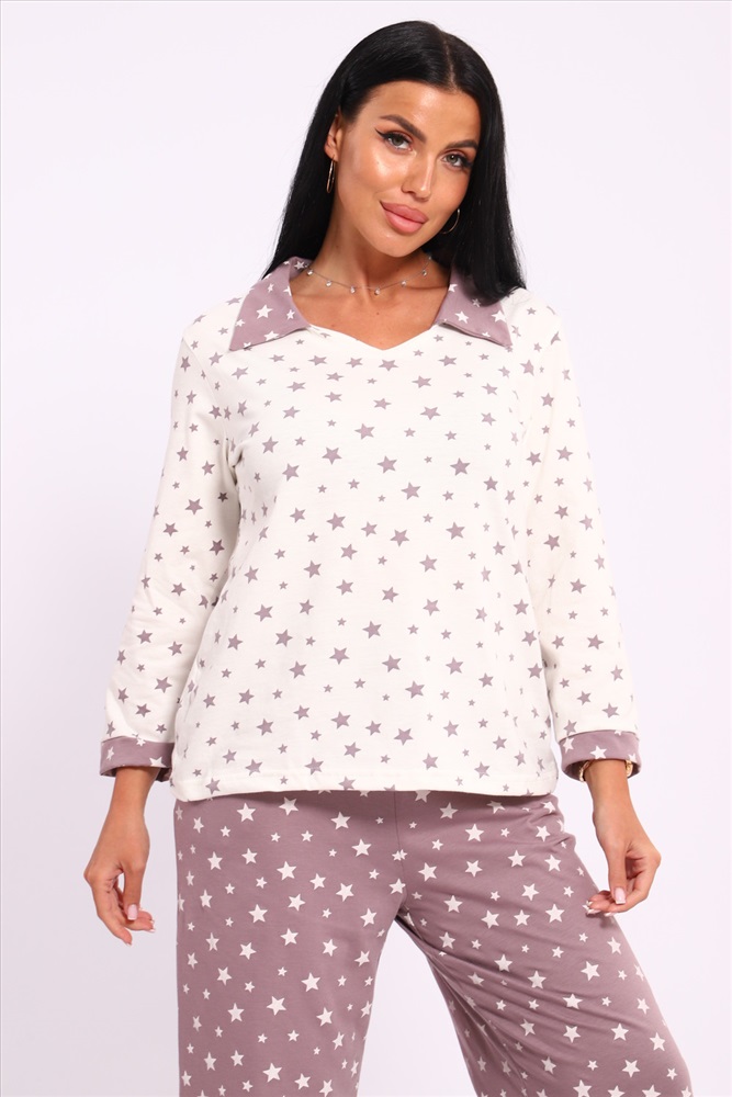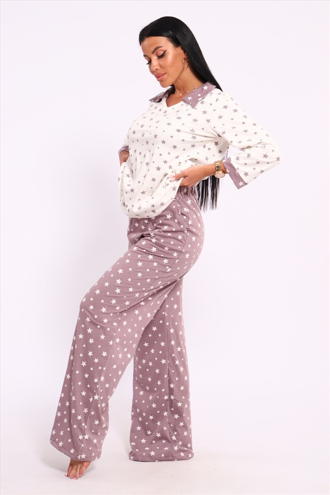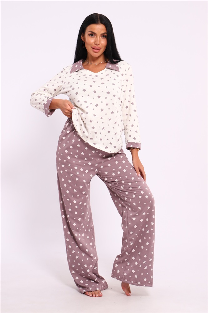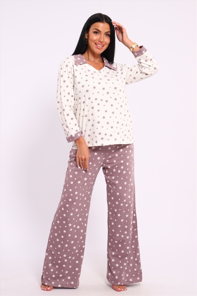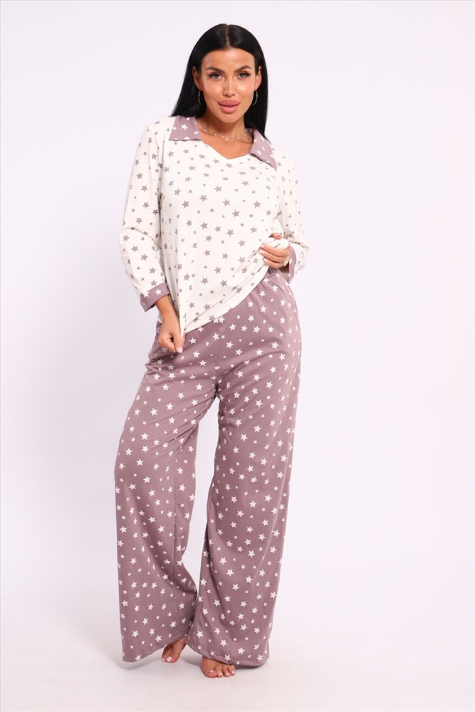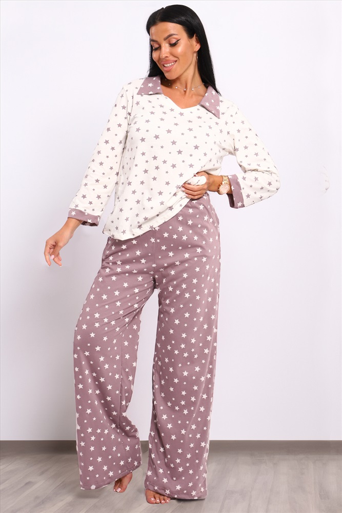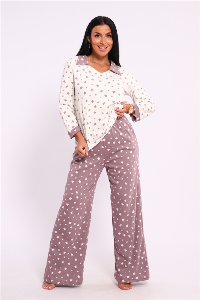 Застежка: без застежки Красивый женский домашний костюм состоит из футболки и брюк палаццо на резинке. Этот стильный домашний комплект выполнен из мягкого и приятного на ощупь трикотажного материала из 100% хлопка. Эта женская пижама с кюлотами сочетает женственность и удобство. Отличный выбор для повседневного использования дома и сна. Штаны клеш с карманами придают образу особый шарм и делают костюм популярным среди молодежи и подростков. Благодаря широким брюкам трубам, пижама выглядит модно и трендово. Этот ночной комплект предлагается в нескольких размерах, включая большие размеры, и подходит стройным девушкам и женщинам, а также полным дамам plus size, для высокого и невысокого роста. Благодаря свободному крою идеально подойдет для беременных женщин, давая им свободу движения и комфорт в домашних условиях. Хлопковая пижама изготовлена из качественного трикотажа (кулирка), который приятен к телу и обеспечивает комфорт во время ночного отдыха. Этот удобный стильный комплект станет отличным выбором для роддома, повседневного отдыха дома или даже для новогодней фотосессии или пижамной вечеринки.