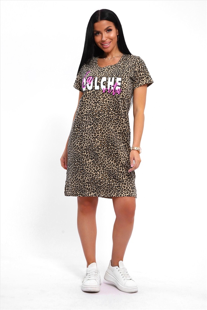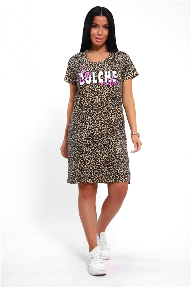 Состав: хлопок 100% Модель: 33525 Туника женская леопардовая Тип товара: туника Материал: кулирка | кулирка Бренд: Натали Суслова Карман: без карманов Назначение: для дома НДС: 5% Отделка: с печатью Рисунок: анималистичный | надпись Рукав: короткий рукав Сезонность: лето | осень | весна | зима Силуэт: полуприлегающий Стиль: домашний Воротник: без воротника Застежка: без застежки Платье домашние из хлопка это идеальный выбор для тех, кто ценит комфорт и стиль в повседневной жизни! Платье обеспечивает не только мягкость на коже, но и долговечность. Без застежки и без рукавов, оно предлагает легкость и удобство, делая его идеальным для домашнего использования, но также подходит для пляжных отдыхов или как повседневная одежда. Особенности модели, такие как трикотажное исполнение и мелкий рубчик, придают платью элегантный и женственный силуэт, подчеркивая женственность и грацию. Отсутствие карманов и ростовка для высоких делает его идеальным выбором для тех, кто ищет простоту и стиль одновременно. Однотонный рисунок добавляет универсальности, позволяя легко сочетать платье с любыми аксессуарами или обувью. Платье леопардовое домашнее это не просто одежда, это ваш личный стиль и комфорт каждый день! Таблица размеров и веса