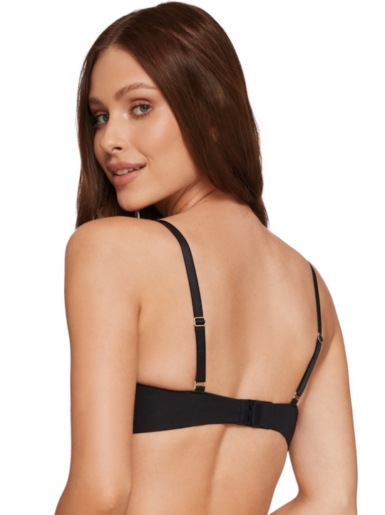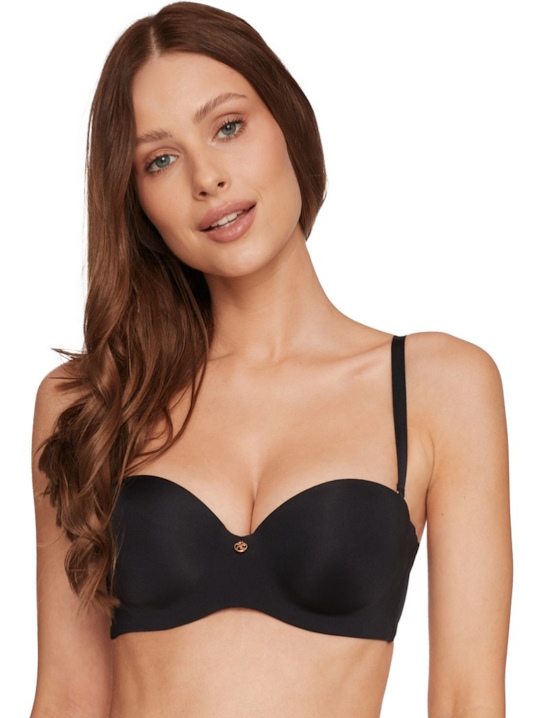 Состав: 84% полиамид, 16% эластан Гладкий бюстгальтер 39719 RAFFEN от европейского производителя Esotiq. Чашка на кости, со съемными вкладышами push up на хлопковом подкладе. Спинка выполнена из гладкой микрофибры с сечтатым подкладом. Продублирована силиконовой лентой внутри для лучшей фиксации без бретелей. Отстегивающиеся, регулируемые по длине бретели.