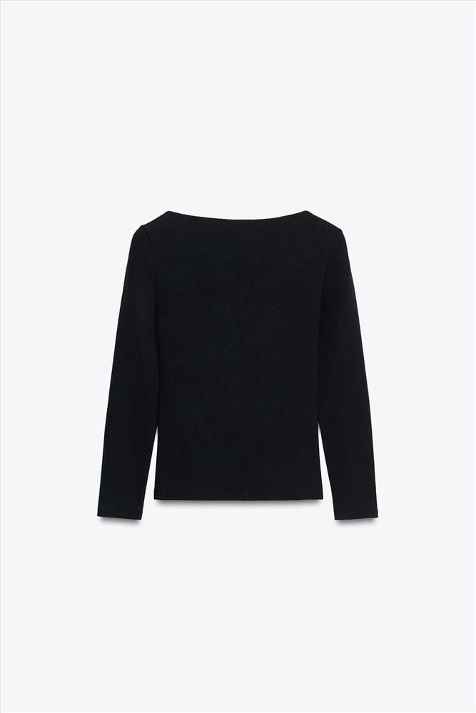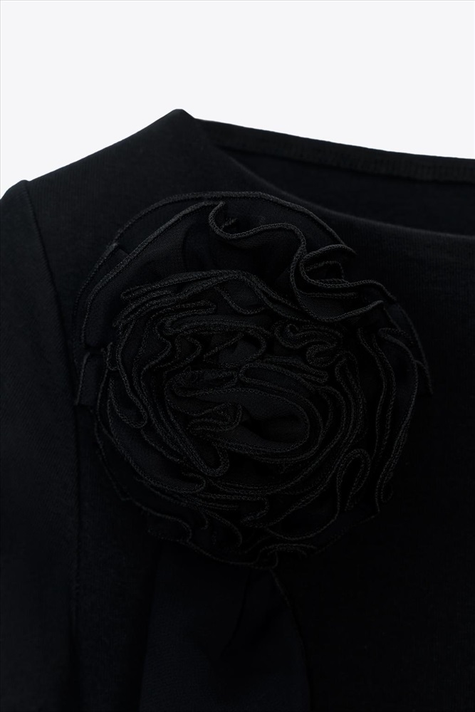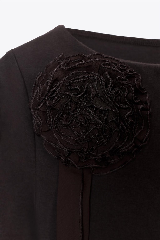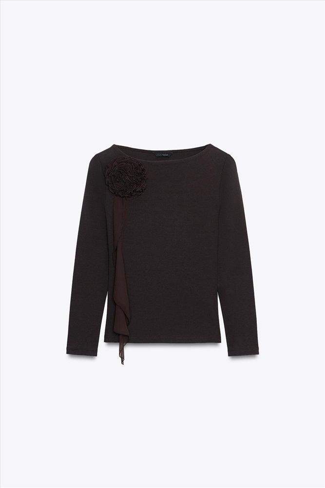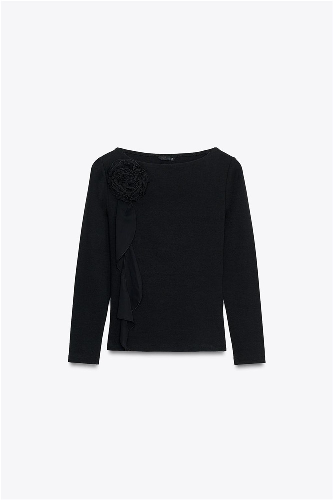 Long sleeve T-shirt with a boat neck. Features a 3D flower detail in the same fabric. Straight hem.