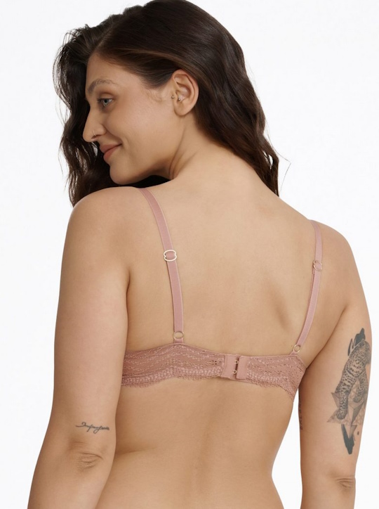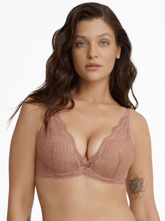 Состав: 90% полиамид, 10% эластан Кружевной бюстгальтер KATHERINE для глубоких декольте. Поролоновая чашка на кости с хлопковым подкладом, съемные вкладыши push up.