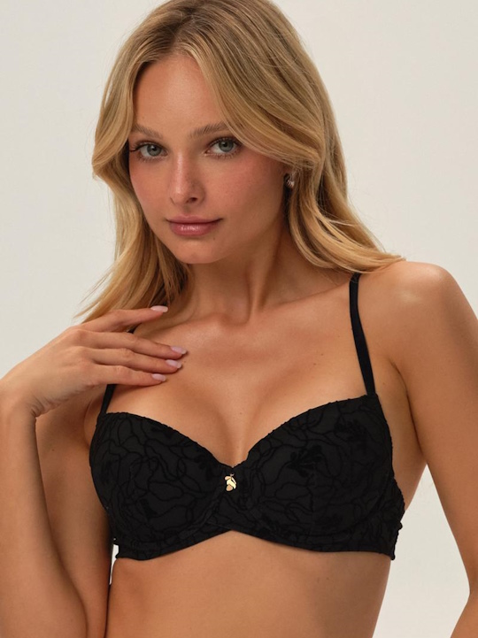 Состав: 79% полиамид, 21% эластан Кружевной бюстгальтер 41780 ORGANIQUE от европейского производителя Esotiq. Чашка на кости со съемными вкладышами push up, внутри хлопковый подклад. Изделие выполнено на базе Kassidy. Украшение - золотая очаровательная подвеска. Комментарии к товару