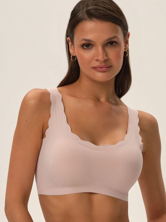 Состав: 74% полиамид, 26% эластан Гладкий бесшовный бюстгальтер-топ. Чашка съемный поролон с эффектом пуш-ап в виде "руки Адама". Чашка без костей. На базе Skyla.