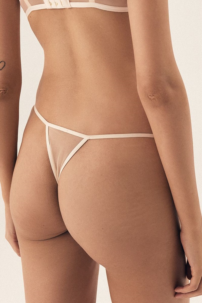 Состав: 90% полиамид, 10% эластан Трусы стринги от европейского производителя Esotiq. Выполнены из микросетки с вышивкой. Узкий бок. Декор - подвеска и бант.