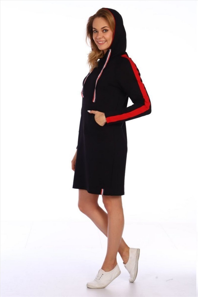 Состав: хлопок 70%, п/э 24%, эл 6% Модель: 427 Платье из футера Тип товара: платье Материал: футер 2-х нитка | футер 2-х нитка Бренд: Руся Длина: средняя длина Карман: кенгуру НДС: 5% Отделка: с карманами | с лампасами | со шнурком Сезонность: лето | осень | весна | зима Силуэт: полуприлегающий Скидка: любая Стиль: повседневный | спортивный Воротник: с капюшоном Застежка: без застежки Это стильное спортивное платье из мягкого футера идеально подойдет для активного отдыха и повседневной носки. Длина миди обеспечивает комфорт и свободу движений, а капюшон добавляет практичности и уютности. Длинные рукава с вставками создают современный и динамичный образ, а два вместительных кармана позволяют удобно хранить мелочи. Идеальный выбор для тех, кто ценит комфорт и стиль в повседневной одежде. Таблица размеров и веса