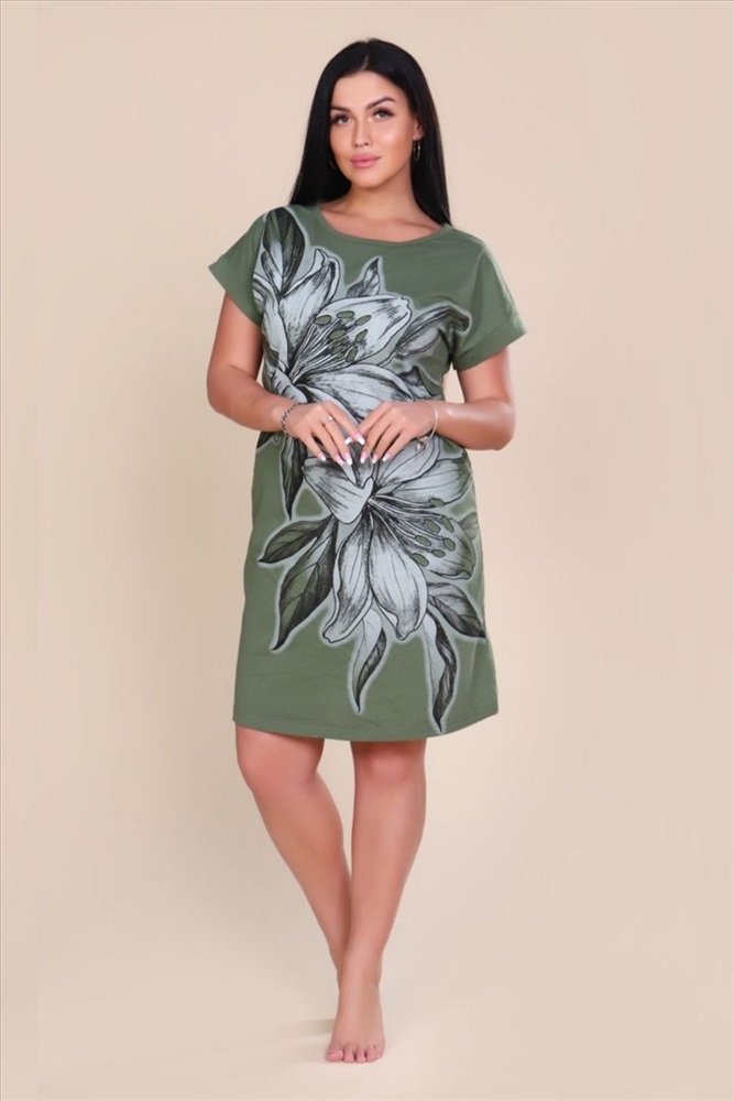 Застежка: без застежки ВНИМАНИЕ!!! Ограниченная серия... Закажите прямо сейчас стильную женскую тунику больших размеров, которая идеально подойдет для летних дней! Эта туника свободного кроя длиной до колена станет отличным выбором как для домашнего использования, так и для прогулок на свежем воздухе. Изготовленная из натурального хлопка, туника выполнена из кулирной глади, что делает ее очень приятной на ощупь и дышащей. Короткие рукава и круглый вырез горловины дополняют ее удобный и практичный дизайн. Свободный крой позволяет комфортно носить тунику женщинам с любым типом фигуры, а также подойдет для будущих мам, обеспечивая свободу движений. Берите оба цвета! Стильные расцветки темно-зеленый цвет хаки с крупным принтом и фуксия добавят образу яркости и уникальности. Эта легкая туника прекрасно сочетается как со спортивной, так и с классической обувью, что позволит вам создавать разные образы в зависимости от повода. Не упустите возможность добавить этот стильный и удобный элемент в свой гардероб!