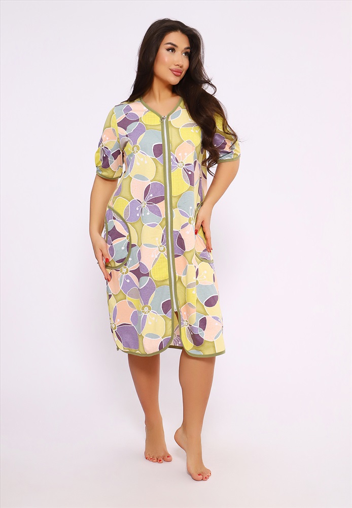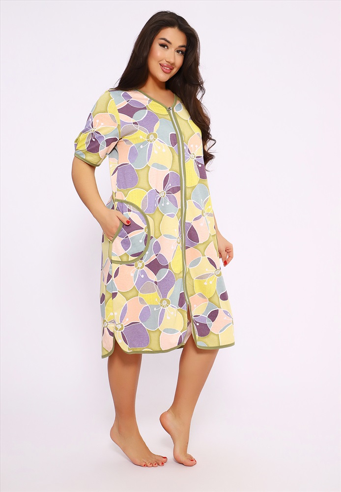 Состав: хлопок 100% Модель: 520 Халат больших размеров - Цветы Тип товара: халат Материал: кулирка | кулирка Бренд: Руся Карман: накладные Назначение: для дома НДС: 5% Отделка: с карманами Рисунок: геометрия | цветы Рукав: короткий рукав Сезонность: лето | осень | весна | зима Силуэт: прямой | свободный Скидка: любая Стиль: домашний Воротник: без воротника Застежка: молния Халаты больших размеров это удобная и практичная одежда, предназначенная для людей с нестандартной фигурой. Они обеспечивают комфорт и свободу движений, а также могут быть стильными и модными. Халаты больших размеров изготавливаются из различных материалов, которые обеспечивают комфорт и долговечность. Наиболее популярные ткани включают: Хлопок - дышащий и мягкий материал, который хорошо впитывает влагу. При выборе халата больших размеров важно учитывать правильную посадку. Обычно такие халаты имеют размеры от 48 до 70 и выше. Они могут быть: Свободного кроя: Обеспечивают максимальный комфорт и свободу движений. Приталенные: Подчеркивают фигуру, не стесняя движений. Наш халат - свободного кроя. Чтобы халат больших размеров служил долго, необходимо соблюдать правила ухода: Стирка: Рекомендуется стирка в холодной воде, чтобы избежать усадки и потери цвета. Сушка: Лучше сушить на воздухе, избегая прямых солнечных лучей. Глажка: При необходимости гладить на низкой температуре, особенно если материал чувствителен к высокой температуре. Халаты больших размеров Руся это не только удобная, но и стильная одежда, которая может стать важной частью. Таблица размеров и веса
