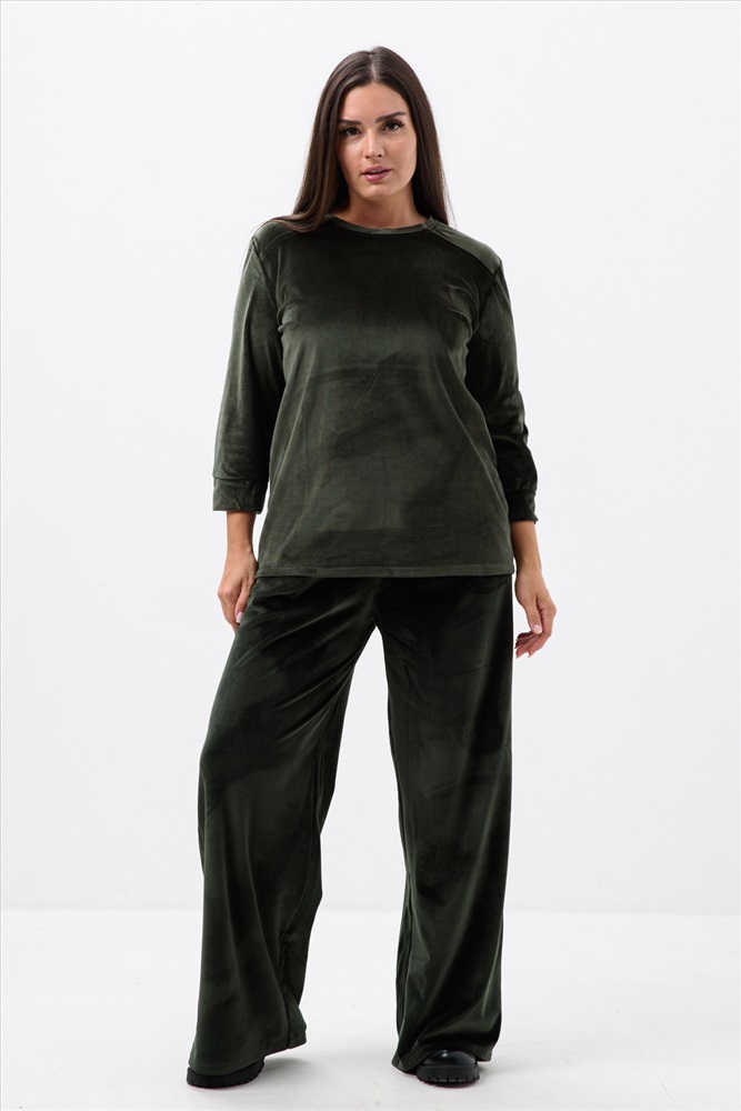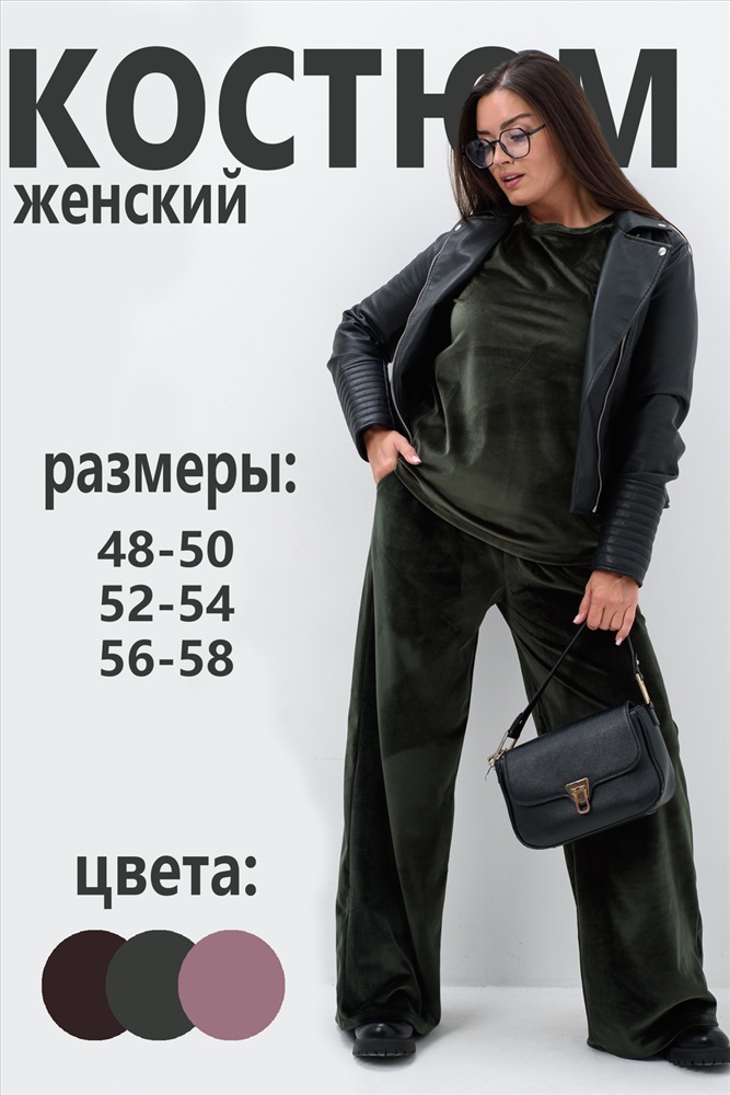 Состав: 100% полиэстер Модель: 52368 Костюм женский Тип товара: костюм с брюками Материал: велюр | велюр Бренд: Натали Суслова Карман: боковые Назначение: для дома НДС: 5% Особенности: на резинке Отделка: с карманами | с манжетами Посадка: средняя посадка Рисунок: однотонные Рукав: рукав 3/4 Сезонность: лето | осень | весна | зима Силуэт: свободный Стиль: домашний | повседневный Воротник: без воротника Застежка: без застежки Костюм женский двойка штаны + кофта выполнен из плотной и мягкой ткани велюр. Брюки с карманами и поясом на резинке, у кофты округлый воротник и рукав 3/4 на манжете. Комплект прямого свободного силуэта, Идеального подходит для повседневной носки. Таблица размеров и весакофта