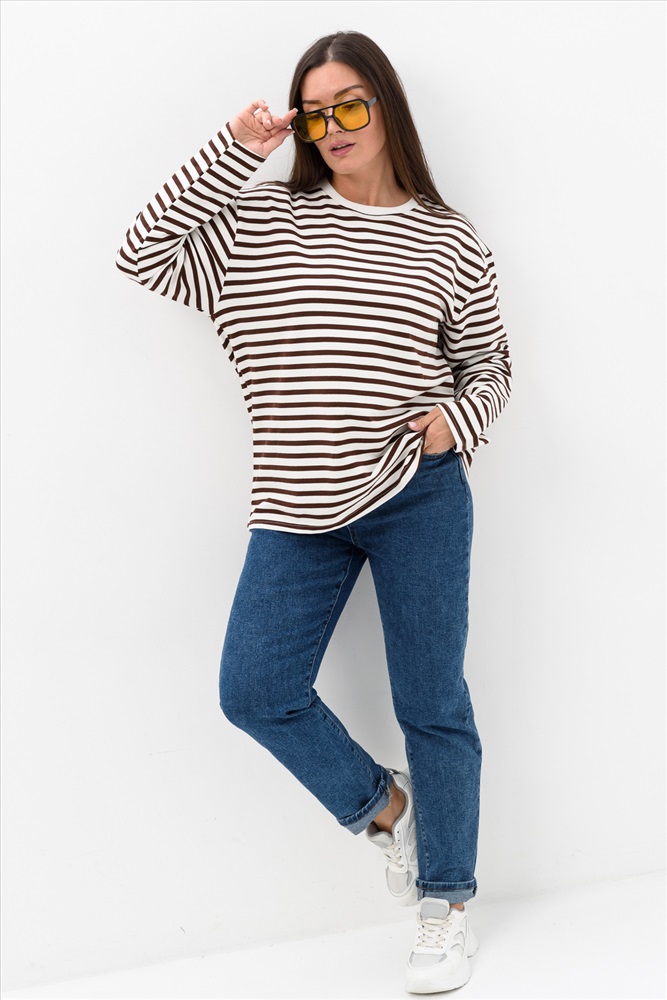 Состав: 85% хлопок; 15% полиэстер Модель: 52371 Свитшот женский Тип товара: свитшот Материал: футер 2-х нитка | футер 2-х нитка Бренд: Натали Суслова Карман: без карманов Рисунок: полоска Рукав: длинный рукав Сезонность: лето | осень | весна | зима Силуэт: свободный Стиль: повседневный Воротник: без воротника Застежка: без застежки Свитшот - это модный элемент вашего гардероба, который сочетает в себе уют и стиль - идеально подходит для любителей комфорта. Изделие с длинным рукавом и округлой горловиной, выполнен из ткани в полоску, что делает его трендом сезона. Благодаря достаточно свободному крою, свитшот обеспечивает свободу движений - хороший выбор для повседневной носки. Таблица размеров и веса