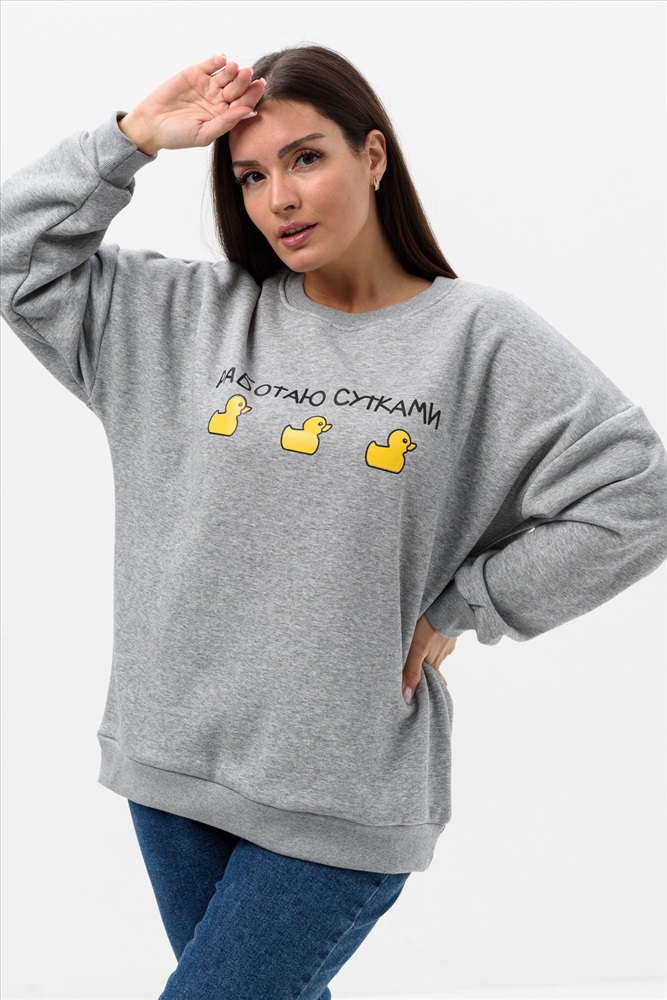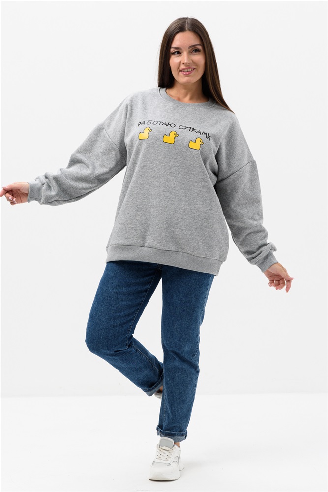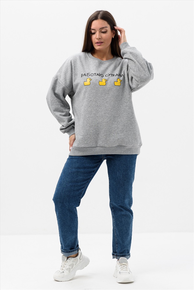 Состав: 60% хлопок, 40% полиэстер Модель: 52381 Свитшот женский Тип товара: свитшот Материал: футер 3-х нитка с начесом | футер 3-х нитка с начесом Бренд: Натали Суслова Карман: без карманов Особенности: с начесом Отделка: с манжетами | с печатью Рисунок: надпись | зверюшки Рукав: длинный рукав Сезонность: лето | осень | весна | зима Силуэт: свободный Скидка: любая | от 10% и больше | от 30% и больше | от 50% и больше Стиль: повседневный Воротник: без воротника Застежка: без застежки Свитшот женский - это идеальный выбор для любительниц комфорта и стиля. Трендовый дизайн с оригинальным принтом на флисовом начёсе делает этот свитшот не только теплым и уютным, но и модным аксессуаром для вашего гардероба. Высококачественный материал обеспечивает мягкость и приятную текстуру, длинный рукав на манжете, прилегающая округлая горловина и пояс снизу, позволяют сохранять тепло в холодные дни. Подойдет для любого случая. Таблица размеров и веса
