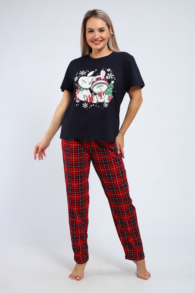 Состав: хлопок 100% Модель: 664 Пижама Зайки Тип товара: пижама с брюками Материал: кулирка | кулирка Бренд: Руся Карман: боковые Назначение: для дома НДС: 5% Особенности: на резинке Отделка: с карманами | с печатью Посадка: средняя посадка Рисунок: клетка | новогодний | разное | зверюшки Рукав: короткий рукав Сезонность: осень | весна | зима Силуэт: свободный Скидка: любая Стиль: домашний Воротник: без воротника Застежка: без застежки Уютная комфортная пижама из футболки с милым принтом Зайки и брюками в клетку с двумя карманами. Таблица размеров и веса